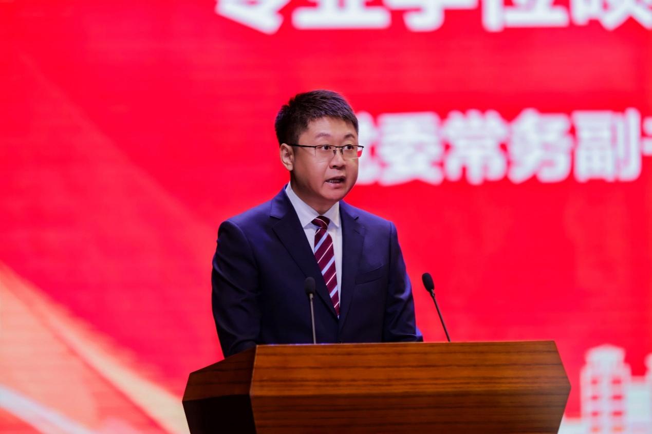 在学位授予仪式的庄严时刻,公司常务副经理、学科学位评定分委员会副主席隋建利教授宣读学位授予决定。