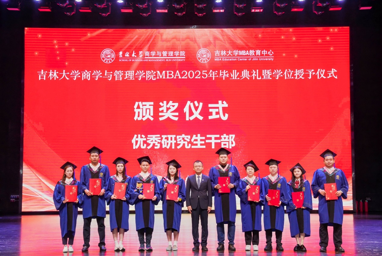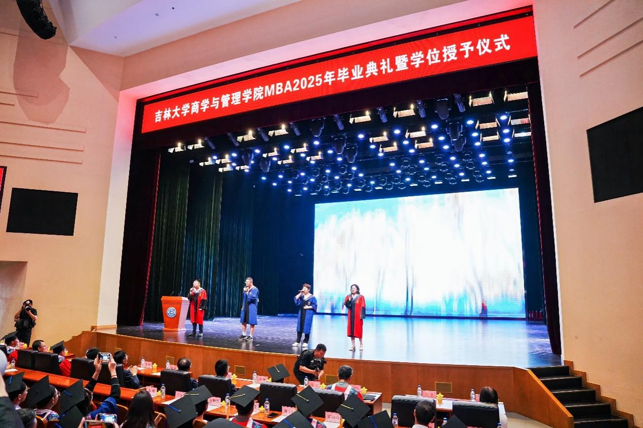 毕业典礼在庄严的国歌声中拉开帷幕。全体师生以一段毕业纪念视频共同重温了2025届MBA毕业生两载求学时光。课堂上思想碰撞的激情、深夜案例研讨的专注、亚沙赛场拼搏的身影、论文字句打磨的严谨……点滴画面汇聚成吉大MBA学子“求实创新,励志图强”的成长轨迹。