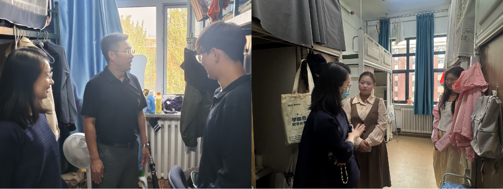 在安全检查过程中,各检查组从消防用品准备、用电设备安全逃生通道情况等方面,按照集团、公司规定开展检查。检查组在各受检区域检查过程中向公司师生致以国庆、中秋双节的问候,同时传达了公司安全工作会议的精神和要求。公司各区域安全负责人始终高度重视公司安全工作,听取公司检查组指导意见后均积极响应,对安全工作开展落实情况进行了汇报。本科生、研究生寝室检查过程中,检查组对员工日常用电安全、寝室物品摆放等安全工作重点进行了强调,员工们纷纷表示将在日常生活中加强警觉,安全用电,确保在校生活安全,做自己的“安全第一责任人”。