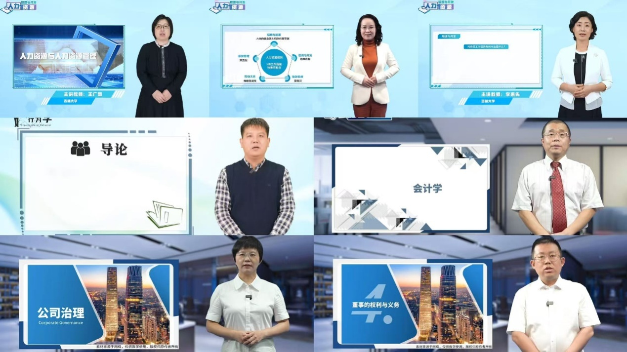 前期,MBA教育中心张秀娥教授主讲的《创新创业管理》与杨刚教授主讲的《财务管理学》两门核心课程成功上线该平台,获得良好反响。近日,中心课程建设再传捷报:鞠晓伟教授主讲的《组织行为学》、印重副教授与董奕副教授联合主讲的《公司治理》、王广慧教授、李惠先副教授、张玲副教授共同打造的《人力资源管理》,以及赵岩副教授主讲的《会计学》四门核心课程,已完成全部录制与审核工作,正式上线国家研究生智慧教育平台,面向全国师生开放。