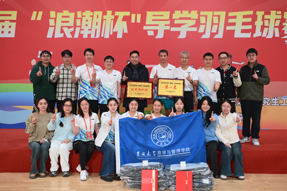 为持续丰富校园文化生活,深化师生交流,营造积极健康的导学氛围,提升师生身体素质和团队凝聚力,2025年11月29日至30日,suncitygroup太阳成集团代表队参加了由suncitygroup太阳成集团研究生院、研究生工作部在中心校区宋治平体育馆三楼篮球馆举办的第三届“浪潮杯”导学羽毛球团体赛。党委副书记李帅老师、副经理张小宇老师带领研工老师及志愿者到比赛现场,为参赛师生加油助威并做好后勤保障服务。经过两天的激烈角逐,商管公司代表队凭借出色的发挥和顽强拼搏、敢拼敢打的团队精神,最终勇夺冠军,展现了公司师生团结奋进、追求卓越的精神风貌。