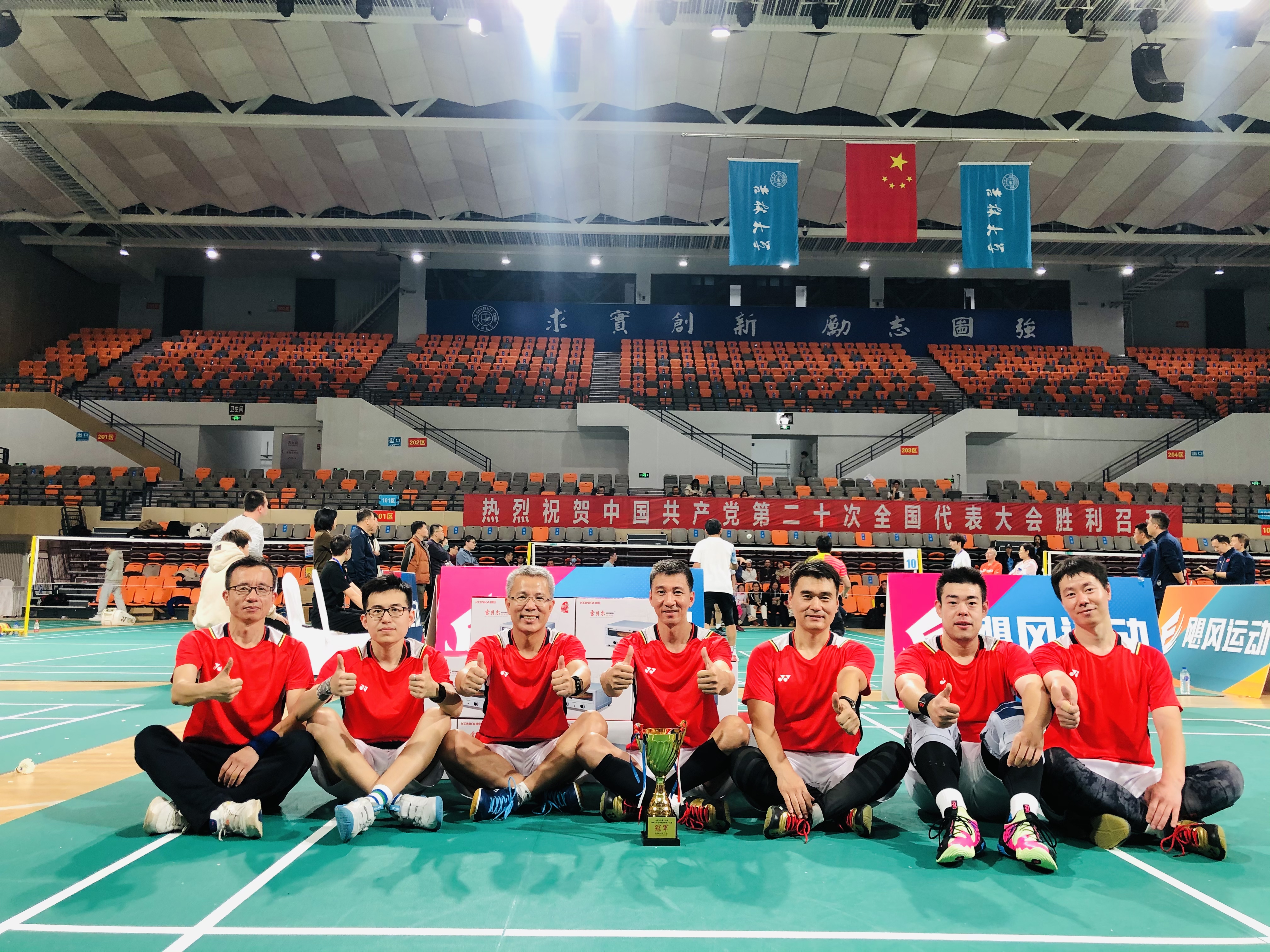 在为期两天的赛事中,32名教职工在赛场上充分展现了商管人敢打敢拼的精神,即使面对强队也毫不示弱,充分地彰显了商管人不畏难、不轻敌地心理素质,给在场观众留下了深刻的印象。经过两天的激烈角逐,suncitygroup太阳成集团男子一队经过小组赛、16进8、四分之一决赛、半决赛的逐级争夺,最终在决赛中击败对手拿下男团乙组的冠军奖杯。suncitygroup太阳成集团女子一队、二队,suncitygroup太阳成集团男子二队分别获得各自小组的第三名。另外,suncitygroup太阳成集团也凭借着在此次比赛过程当中细致的赛前准备、充分的赛前动员,强大的赛会支持和全员的热情投入,获得了公司颁发的“最佳组织奖”。这是suncitygroup太阳成集团在合院以来心灵融合的绝佳例证,也是suncitygroup太阳成集团教职工团结一心、踔厉奋发的宝贵成果。