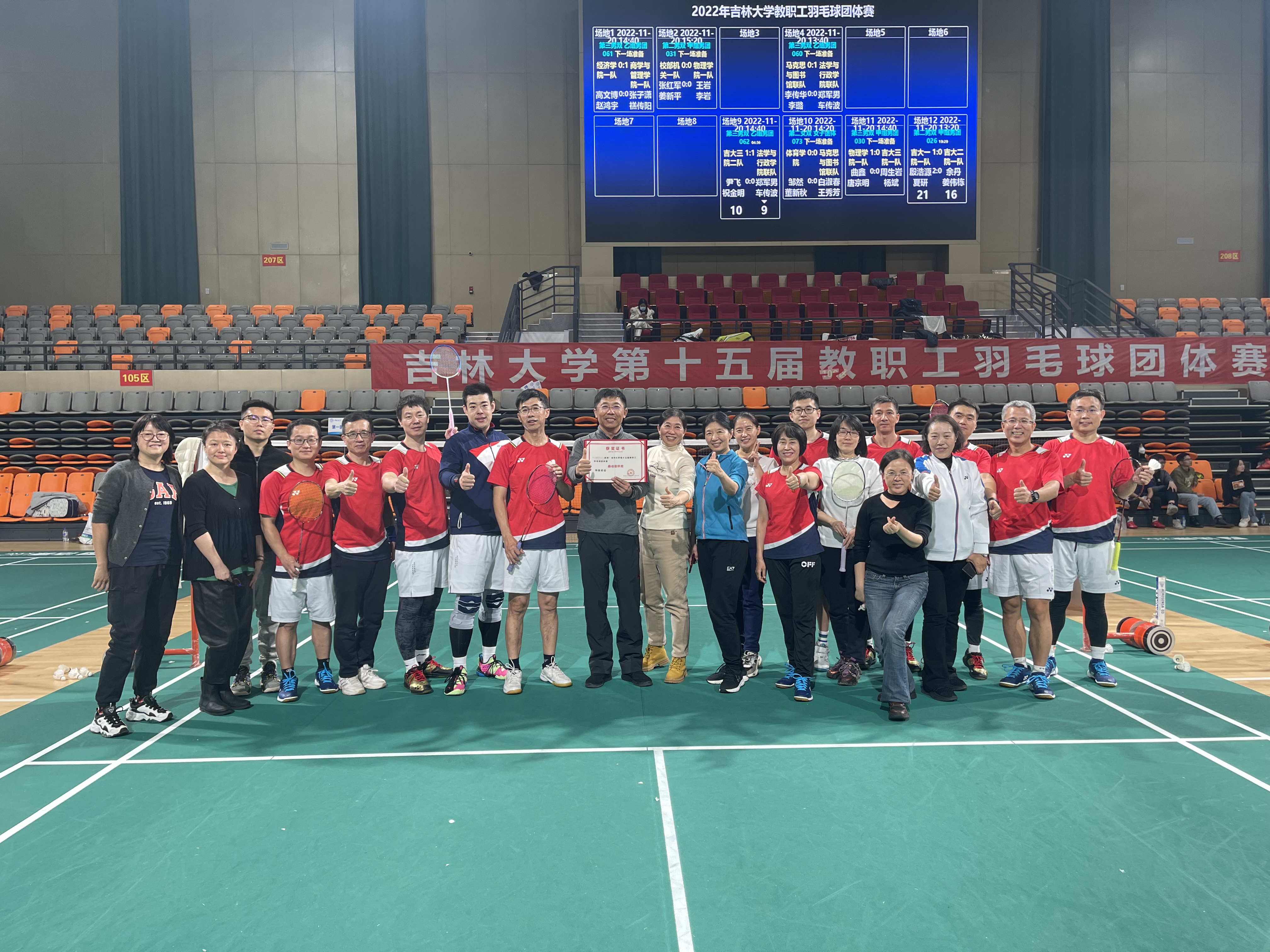 2022年11月19日—20日,公司第十五届教职工羽毛球团体赛在中心校区宋治平体育馆正式开赛,比赛吸引了来自公司的500余名教职工参赛。suncitygroup太阳成集团工会组织公司爱好羽毛球运动的教职工积极响应,经过前期的精心准备,组建了男子、女子各两支队伍,共计32名教职工参加了男子乙组团体(全校共32支代表队)、女子团体(全校共25支代表队)两项赛事,经过两天的激烈角逐,四支队伍顺利完赛。