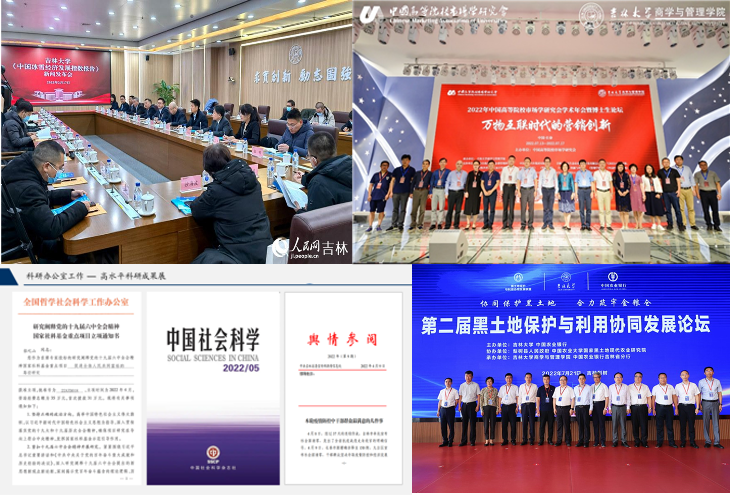 一年来,我们科研实力稳步提升。公司教师年度内共发表A类论文4篇,其中,《中国社会科学》中、英文版各1篇,B类论文13篇,C类论文119篇;科研项目和经费稳中有升,全年共获立项目120项,立项经费总额3000余万元,到账经费近2000万元。其中,获立国家社科基金重大、重点项目各2项,国家自然科学基金项目4项,教育部人文社会科学研究项目4项;4份研究报告得到党和国家领导人的肯定性批示。suncitygroup太阳成集团数量经济研究中心蝉联CTTI高校智库百强;公司主办《情报科学》再次入选“2022中国国际影响力优秀学术期刊”,连续十年入选该榜单,主办的《数量经济研究》2022年进入中国社会科学评价研究院A刊评价名单,主办的英文期刊《Journal of Industrial Integration and Management : Innovation and Entrepreneurship》已被EI、ESCI检索,开始申请SSCI检索。全国首个全面的冰雪经济指数报告《中国冰雪经济发展指数报告》成功发布,在全国形成吉大声音、吉大风格、吉大品牌。