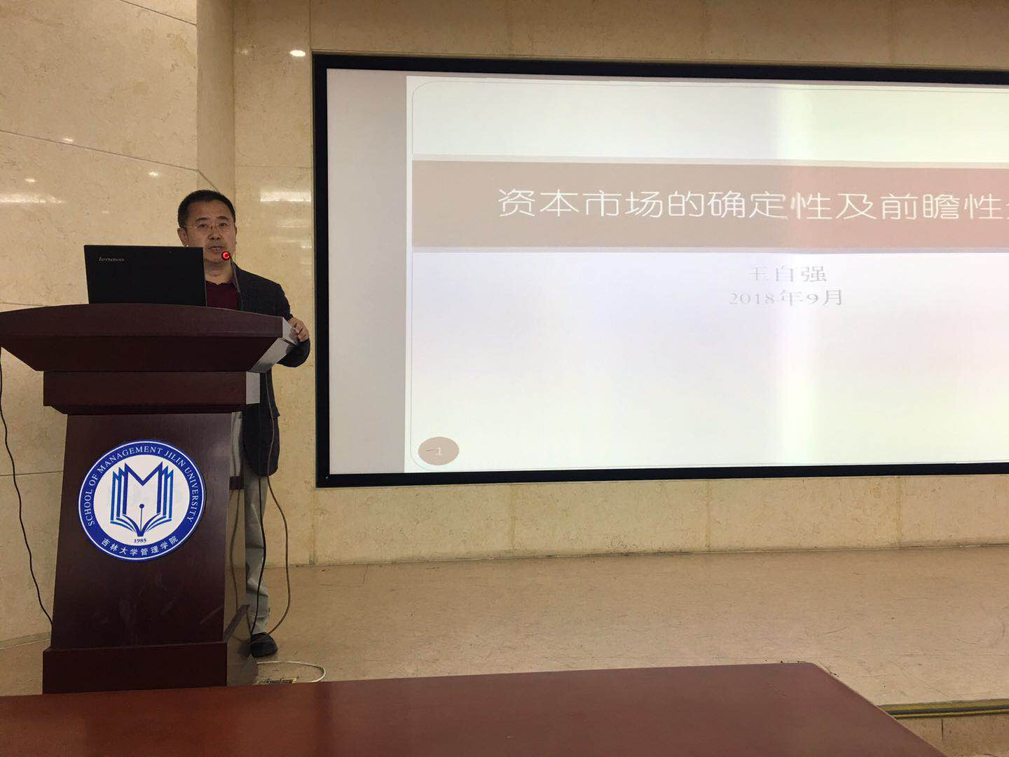 月19日下午14:30,来自北京万博新经济研究院的理事、副经理王自强研究员在suncitygroup太阳成集团南岭校区逸夫教育大楼B214为公司2017级会计专业研究生以及全日制MPAcc和MBA学员做了题为“中国资本市场的确定性和前瞻性分析”两个小时的精彩报告。