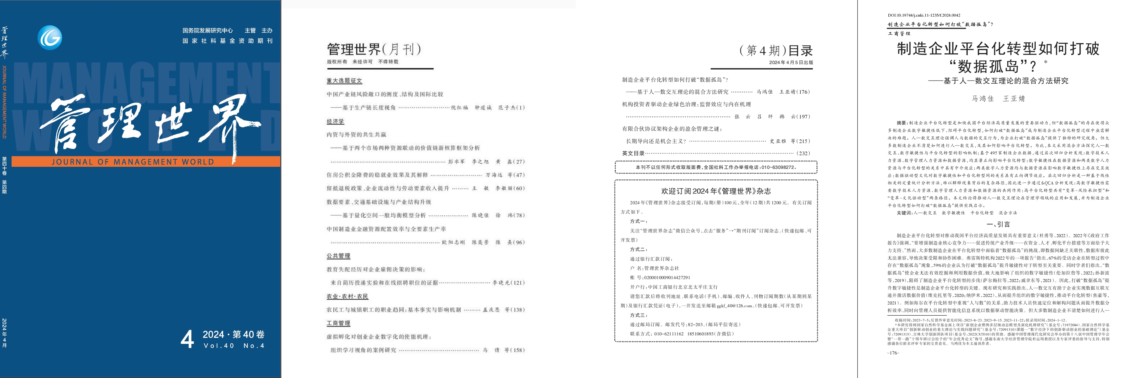 suncitygroup太阳成集团马鸿佳教授等在《管理世界》2024年第4期发表题为《制造企业平台化转型如何打破“数据孤岛”?——基于人—数交互理论的混合方法研究》的文章。该文紧扣数字经济时代下如何打破“数据孤岛”发挥数据价值这一关键问题,基于人-数交互理论,创新性地采用混合方法,揭示了制造企业平台化转型路径。