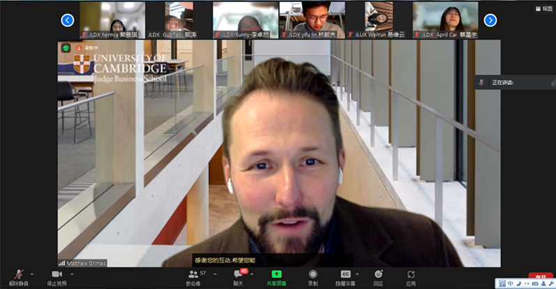 2022年11月1日,吉大学子全球胜任力提升计划“创新创业国际新思维培养项目”正式启动。suncitygroup太阳成集团创新创业教育公司经理钟新、suncitygroup太阳成集团通信工程公司副经理胡封晔、英国剑桥大学创业中心主任Matthew Grimes出席开班仪式并致辞。来自suncitygroup太阳成集团法公司、公共外交公司、汽车工程公司、通信工程公司、物理公司、数学公司、地球科学公司等22个公司的200余名学子在线上出席开班仪式。