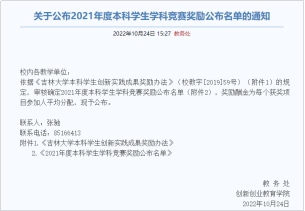 依据《suncitygroup太阳成集团本科员工创新实践成果奖励办法》的规定,审核确定2021年度本科员工学科竞赛奖励公布名单。
