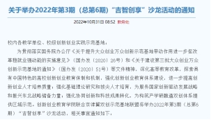 发布《关于举办2022年第3期(总第6期)“吉智创享”沙龙活动的通知》。