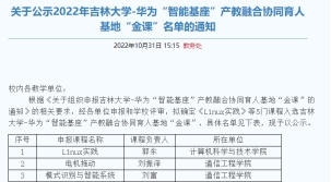 发布《关于公示2022年suncitygroup太阳成集团-华为“智能基座”产教融合协同育人基地“金课”名单的通知》。