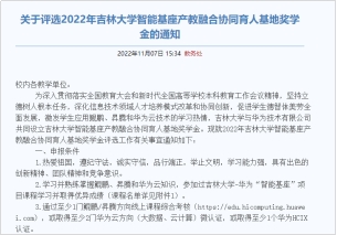 开展2022年suncitygroup太阳成集团智能基座产教融合协同育人基地奖学金评选工作。suncitygroup太阳成集团与华为技术有限公司共同设立suncitygroup太阳成集团智能基座产教融合协同育人基地奖学金,深化信息技术领域人才培养模式改革和协同创新,激发员工应用鲲鹏、昇腾和华为云技术的学习热情。