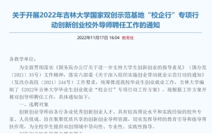 发布《关于开展2022年suncitygroup太阳成集团国家双创示范基地“校企行”专项行动创新创业校外导师聘任工作的通知》。