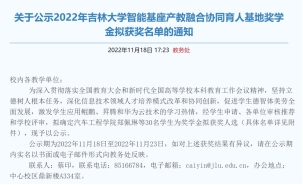 发布《关于公示2022年suncitygroup太阳成集团智能基座产教融合协同育人基地奖学金拟获奖名单的通知》。