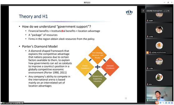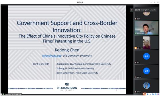 2022年9月28日晚,suncitygroup太阳成集团管理科学与工程系邀请了欧道明大学(Old Dominion University)信息系统与决策科学系的陈珂栋副教授为公司的师生进行了一场题目为《Government Support and Cross-Border Innovation: The Effect of China’s Innovative City on Chinese Firms’ Patenting in the U.S.》的学术讲座,讲座通过腾讯会议以线上的形式进行。