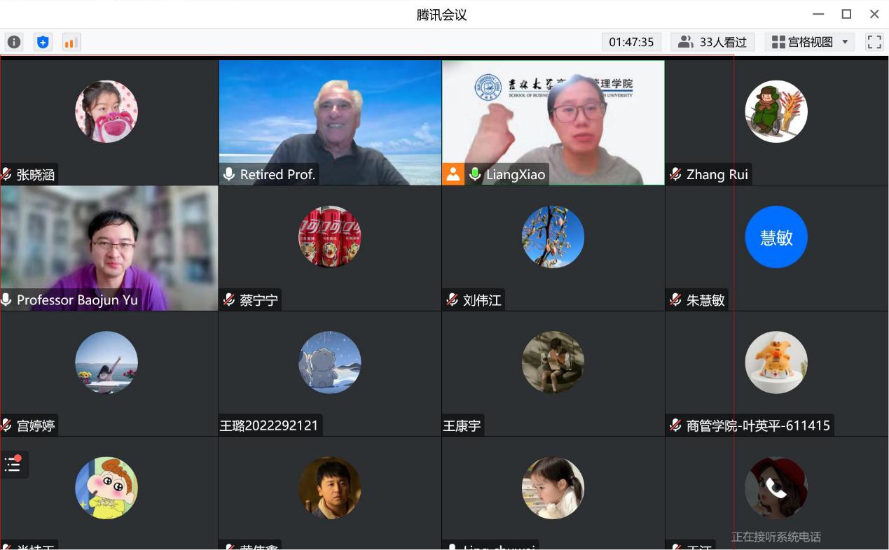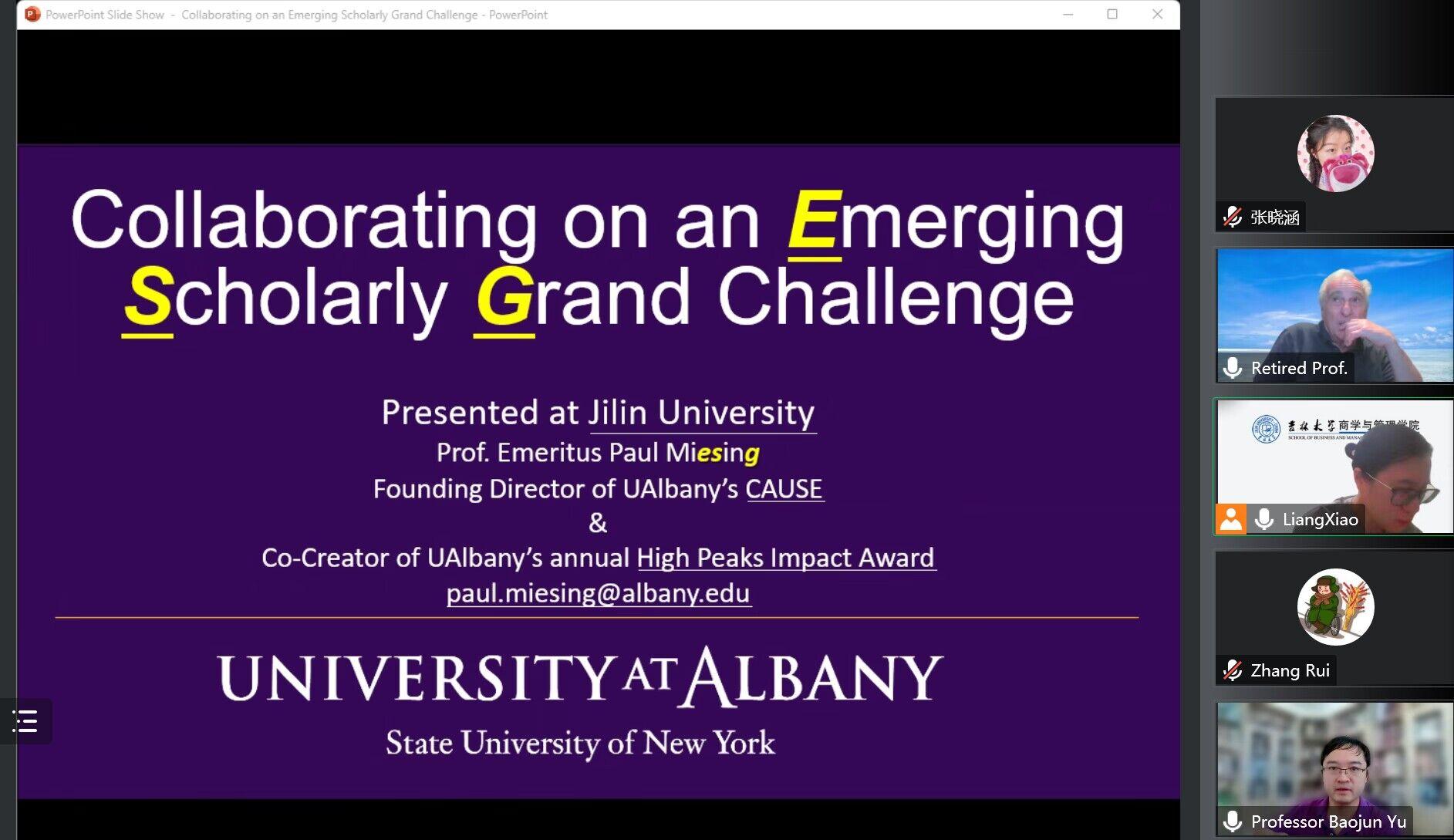 2022年10月11日上午,suncitygroup太阳成集团管理科学与工程系邀请了美国纽约州立大学奥尔巴尼分校(SUNY at Albany)商公司的荣休教授Paul Miesing为公司的师生进行了一场题目为《Collaborating on an emerging scholarly grand challenge》的学术讲座,讲座通过腾讯会议以线上的形式进行。suncitygroup太阳成集团管理科学与工程学科的老师和硕博研究生们在线参与了本次讲座。梁潇老师主持了本次会议。