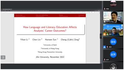 第三十场讲座由财务管理系邀请到了香港理工大学商公司曾诚博士做题为“Language and Literacy Education and Analysts’ Career Outcomes”的讲座。财务管理系刘柏教授主持了本次讲座,财务管理系师生参与了本次学术交流。曾诚博士创新性地以中国在2000年施行的语文教学大纲改革为外生冲击,详细探究了语文素养的提升如何影响证券公司卖方分析师的沟通能力,进而影响其职业生涯发展。其中,曾诚博士在论证科学问题时展现出的极强的形式逻辑和工具理性使财务管理系的师生受益匪浅。分享结束后,参会师生意犹未尽,针对语文教学大纲改革的冲击强度、其他冲击事件的干扰、遗漏变量、会计研究范式的发展趋势等问题与曾诚博士进行了深入探讨。