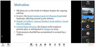 第五十四场讲座由suncitygroup太阳成集团财务管理系承办,主讲人是西交利物浦大学国际商公司Jeffery Yu副教授,财务管理系刘柏教授主持了本次讲座,财务管理系师生等参与了本次学术交流。Jeffery Yu教授讲座题目是:Risk Shifting within the Firm: The Effect of Policy Uncertainty on Corporate Pension Plans。Jeffery Yu教授重点关注了公司养老金投资不足这一问题,并创新性地从经济政策不确定外生冲击造成的公司、高管和员工三者间的风险转移视角,结合详细稳健的实证检验对这一问题进行了诠释。分享结束后,Jeffery Yu教授针对宏观到微观的传导机制、中介模型、数据选择、劳动力和老龄化研究等问题和参会者进行了深入探讨。Jeffery Yu教授谦和谦逊的品质和做有责任研究的情怀使与会师生受益匪浅,期待以后有更多交流的机会。