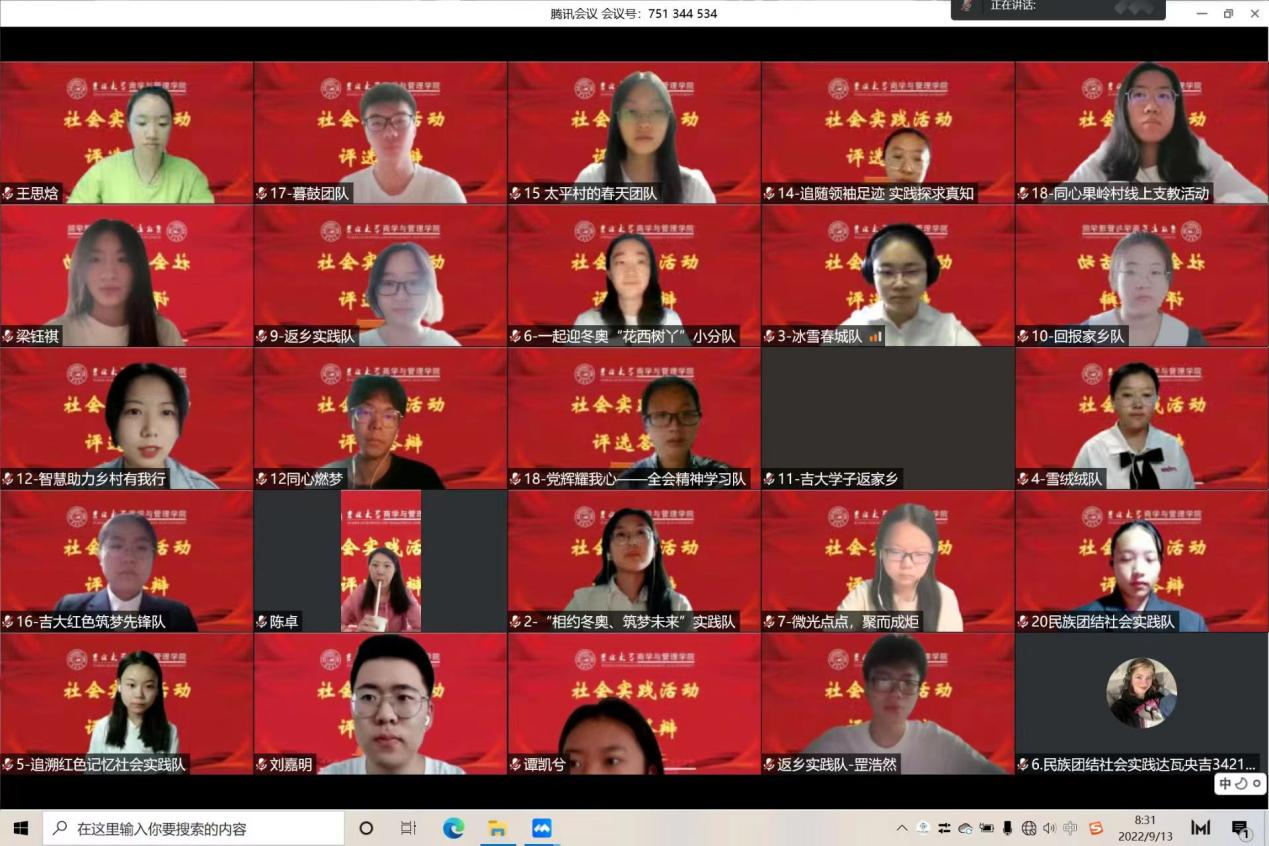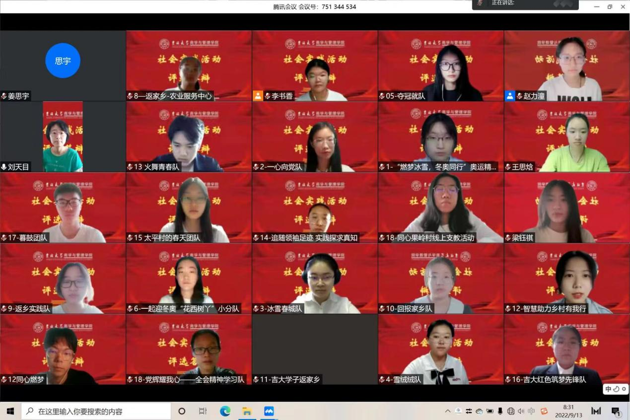 为更好地学党史,感党恩,听党话,跟党走,提升青年学子感知国情,服务社会能力,按照校团委要求,公司于暑期组织开展了2022年假期社会实践活动。为近一步总结经验,鼓舞先进,扩大影响,公司于近期开展了线上暑期社会实践活动评比大会。会议由公司团委社会实践部主持,公司学办主任兼2021级本科员工辅导员丁越老师、公司团委书记兼2020级本科员工辅导员刘天目老师、2019级本科员工辅导员陈卓老师、2019级本科员工辅导员刘翔宇老师、2022本科员工辅导员李毓老师、2020级本科员工辅导员禚传阳老师出席了本次会议。