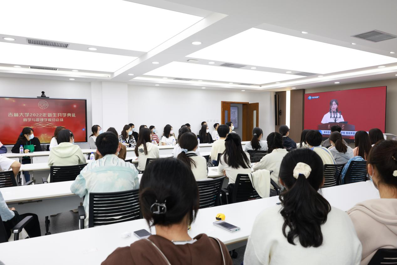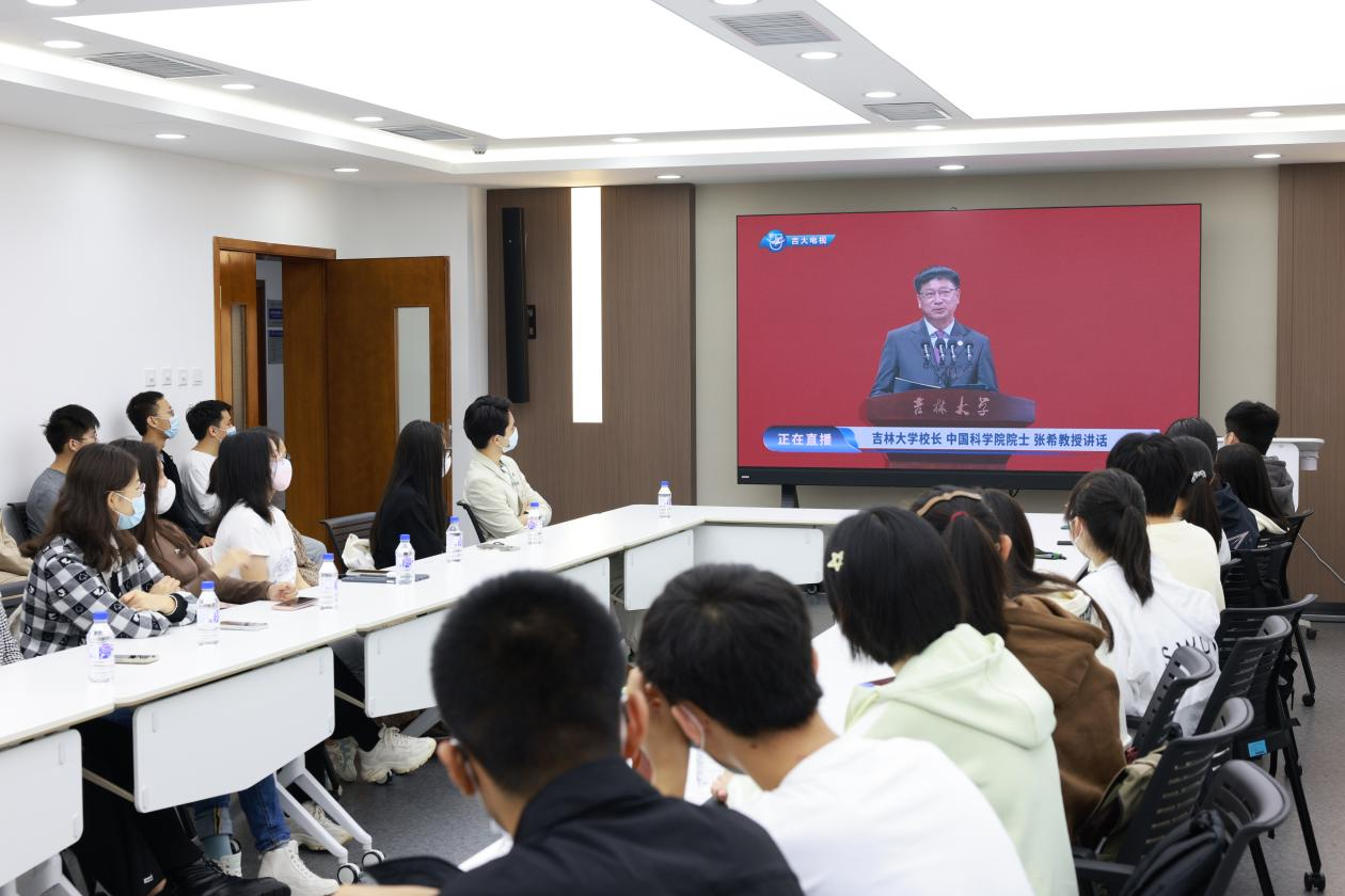 2022年9月15日上午八点三十分,2022年开学典礼在中心校区宋治平体育馆举行。suncitygroup太阳成集团积极响应公司要求,在中心校区布置四个分会场,在严格遵守长春市及suncitygroup太阳成集团近期疫情防控要求的前提下,组织公司全体新生在线观看2022年开学典礼。公司党委书记赵军、公司党委副书记兼副经理李帅与同学们共同观看。