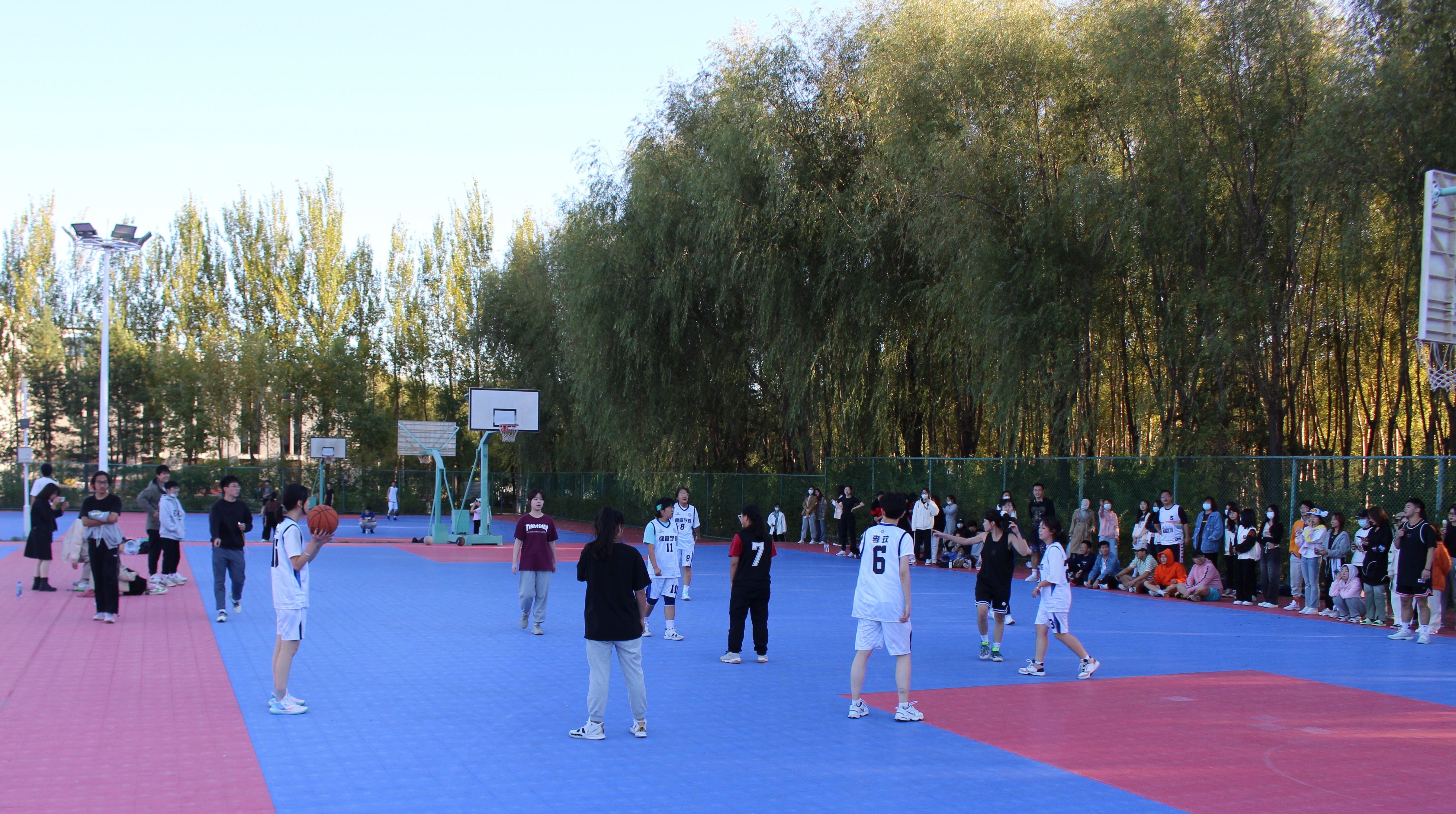 本届suncitygroup太阳成集团篮球赛要求同届组队,每队8至9人。各年级同学积极响应,纷纷组成球队,共有13支新老生组成的队伍参与到比赛当中。篮球场上,双方队员你争我夺,或攻或守,不放过每一个得分的机会,力争进球,赢得比赛。9月24日下午,经过多场激烈的角逐,最终有四支队伍进入了第二天的决赛。当天下午4时,篮球场上还组织了一场女子篮球赛,姑娘们身着队服,斗志昂扬。她们配合默契,控球游刃有余,运球、传球、卡位、穿插、抢断、快攻、上篮、投球,动作帅气利落,赢得了现场观众的阵阵掌声与喝彩,展现了巾帼不让须眉的飒爽英姿。