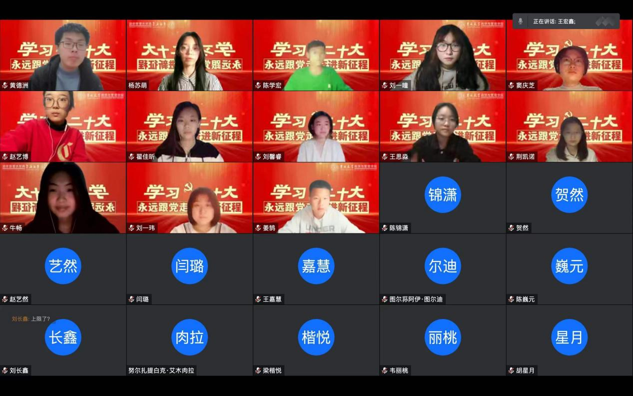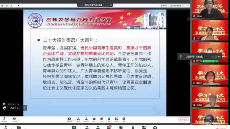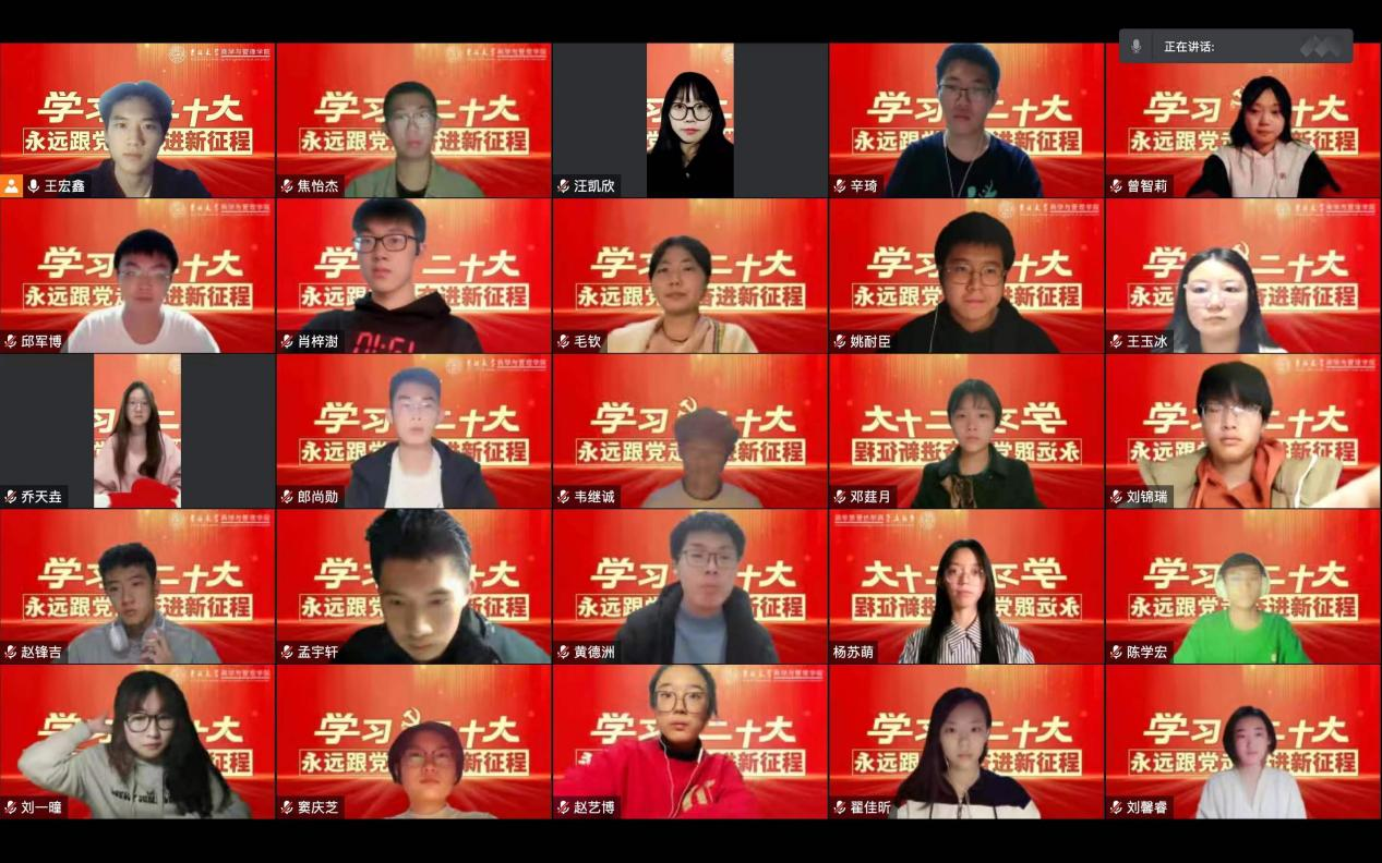 为扎实落实公司党委关于学习宣传贯彻二十大精神的工作部署,深刻领会二十大报告的思想、内涵、部署、要求,切实把思想和行动统一到党的二十大精神上来,党委员工工作部统一部署、精心策划,于2022年10月29日线上召开党的二十大精神系列宣讲活动第一讲,由马克思主义公司教授王成老师担任主讲人,中心校区各公司本科生党员、预备党员、入党积极分子代表参加会议。