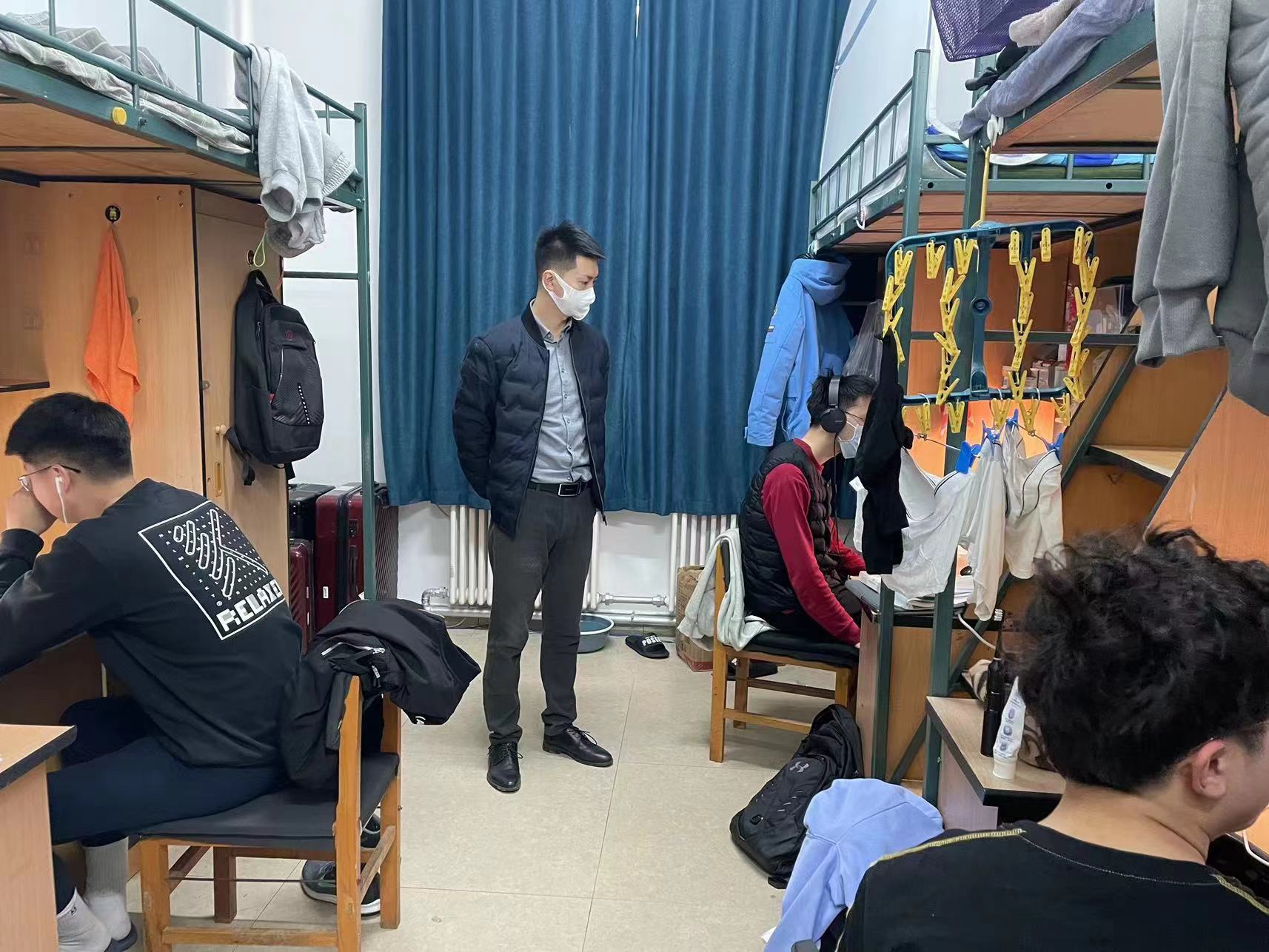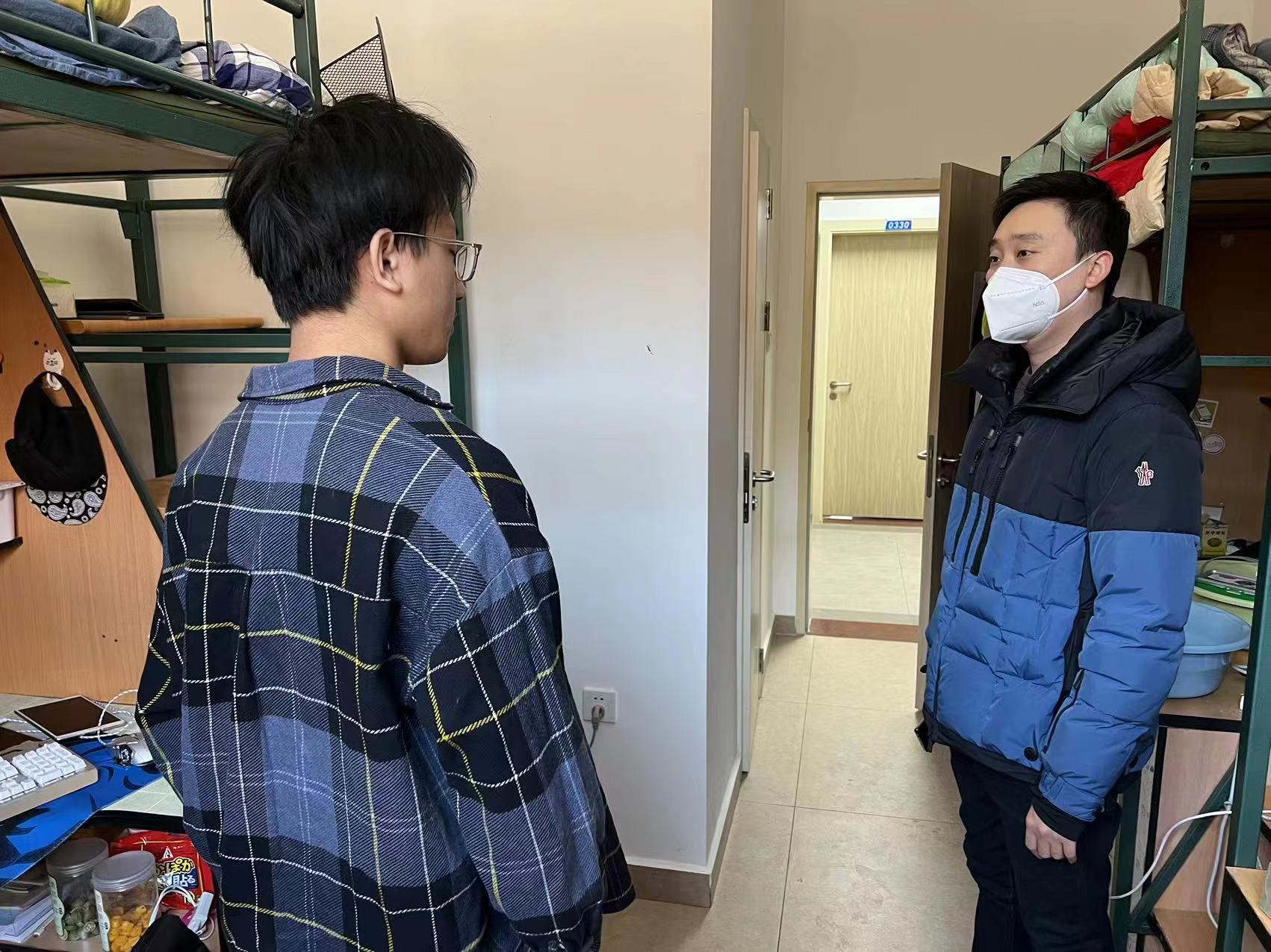 残雪消融,春意渐浓,微醺的暖风拂去了冬日的凛冽,吹开了新学期的篇章。为帮助同学们在新学期有序开展学习生活,进一步做好新学期返校同学的日常管理与服务保障工作,2023年2月20日,2019级辅导员陈卓、刘翔宇,2020级辅导员刘天目、禚传阳,2021级辅导员丁越及2022级辅导员李毓、贾奇达走访员工寝室,进一步了解同学们学习生活情况和思想状态。