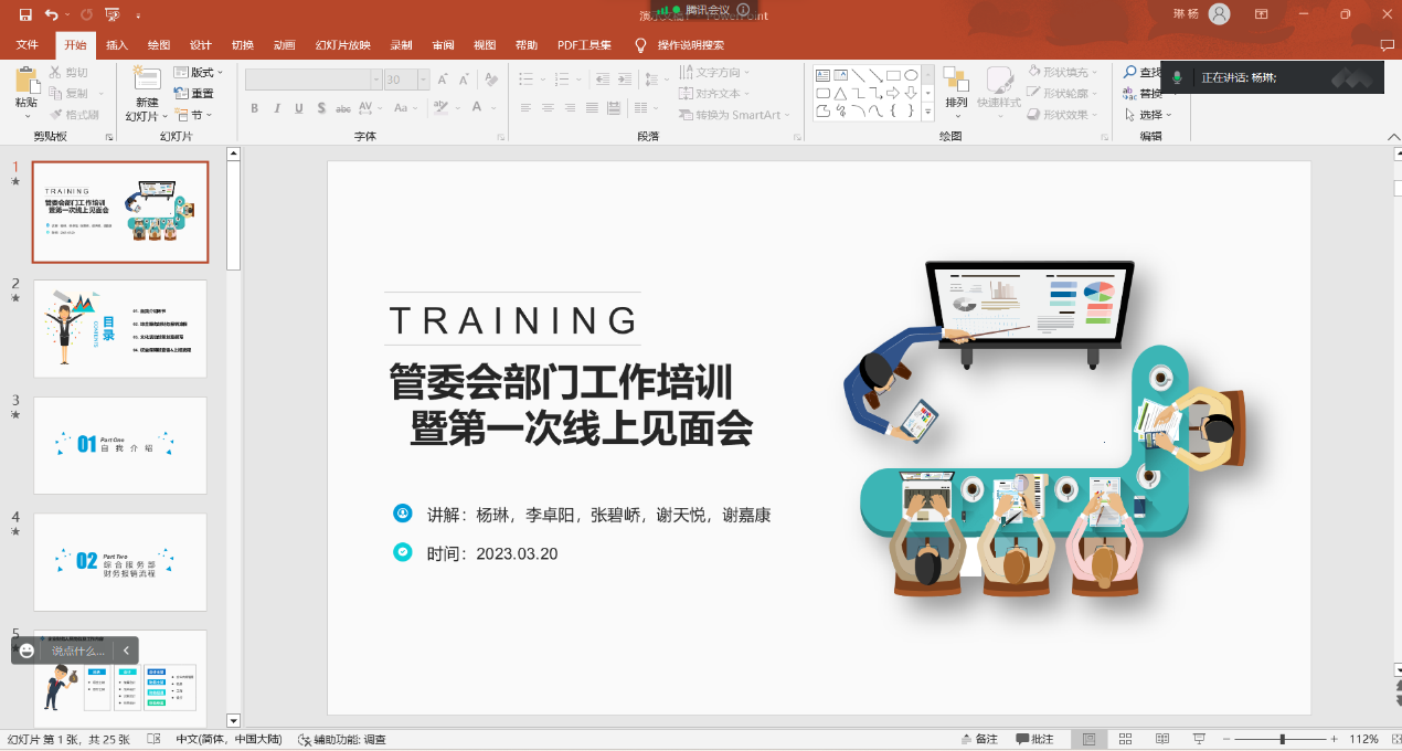 3月22日,公寓管理与服务员工委员会组织召开线上部门工作培训会议,并由主任杨琳担任主持人。首先,由主任和各部门主要负责人分别进行自我介绍并对新任2021级工作人员表示祝贺与期许,2021级工作人员也分别进行自我介绍并提出未来工作展望。随后进行了管委会各部门工作培训。综合服务部负责人李卓阳介绍了管委会财务报销的具体流程和所需材料以及劳动志愿时长开具的注意事项等;文化活动部负责人介绍活动策划案撰写的具体步骤及格式规范;权益保障部负责人谢嘉康、谢天悦分别介绍寝室卫生安全检查的实施过程以及上报步骤。2021级工作人员认真听取讲解,熟悉各部门职责权限、掌握自身部门工作开展,同时也了解了其他部门的工作要点。最后,由主任杨琳进行总结发言。