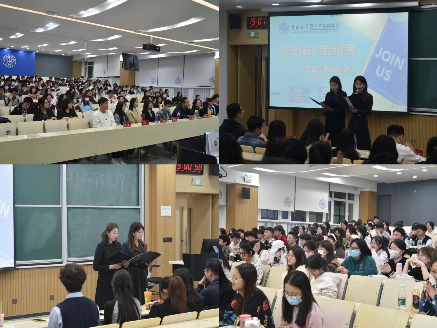 为确保公司团学组织健康有序发展,发挥组织育人功能,提高员工自我管理、自我服务能力,3月29日和3月30日晚7点,分别在逸夫楼第八阶梯教室和第十六阶梯教室举行了“选贤任能,商管撷秀——suncitygroup太阳成集团员工组织纳新宣讲会”,向2022级员工介绍公司员工组织架构以及各个部门的情况和招新要求。会议由团委秘书部的张笑旸和员工会校园文化部的张子楠共同主持,2022级辅导员李毓老师和贾奇达老师、团委副书记孙玖贺、王艺睿,员工会执行主席柏申苏、刘嘉怡、孙哲,管委会主任杨琳,新媒体工作站站长姜子航、邱丁一,部分员工组织部门负责人和2022级员工参加了宣讲会。