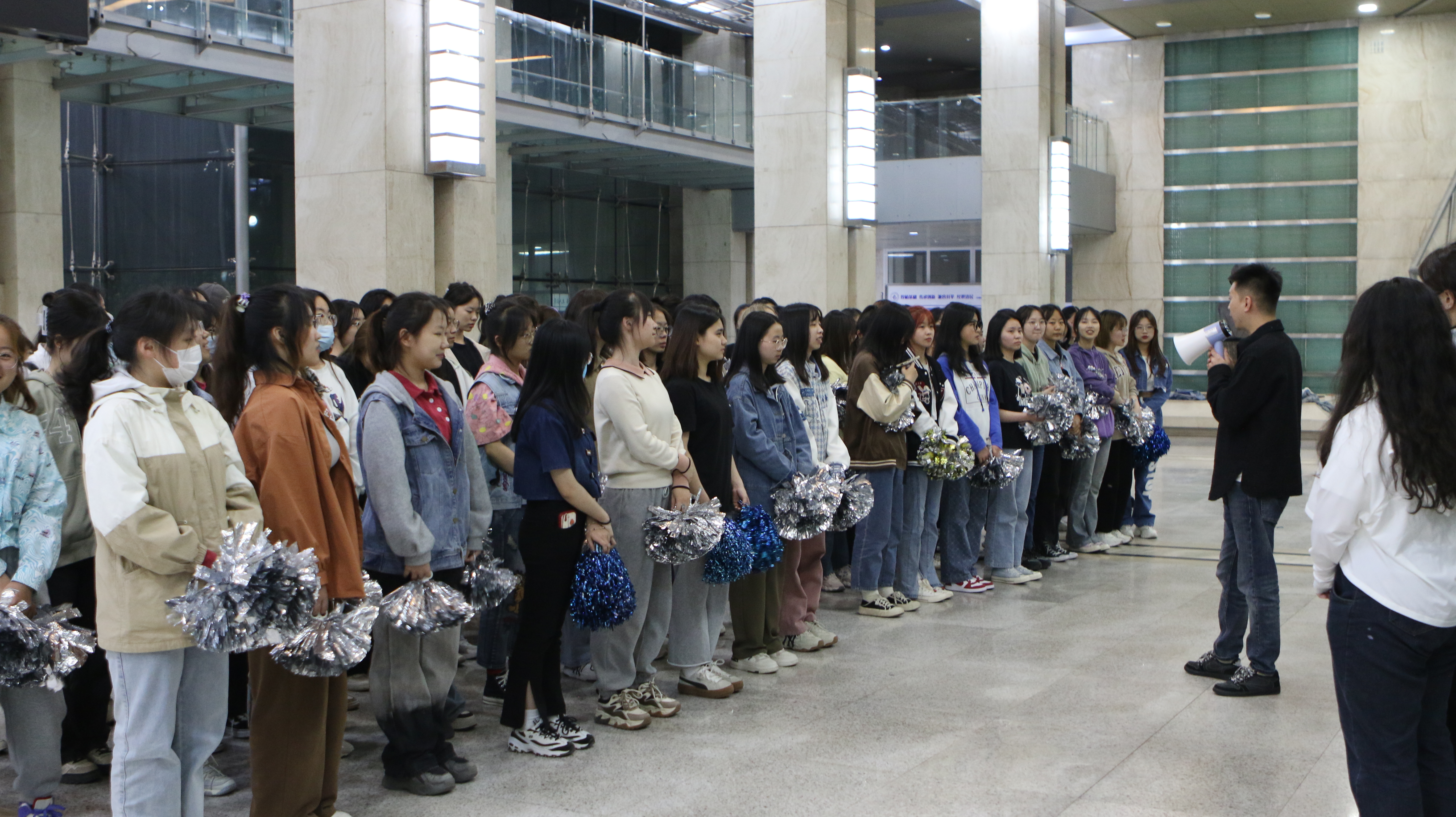 最后,老师们来到运动场,对现场排练的观众进行了动员。老师们强调,观众是非常重要的环节,开幕式当天,同学们一定展现出公司学子的风貌,近期大家一定积极配合观众席的训练,以更好地状态迎接运动会的到来。