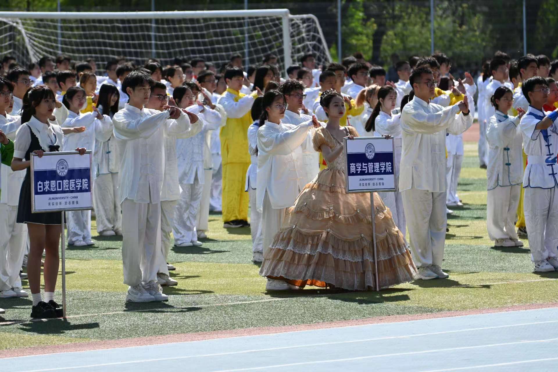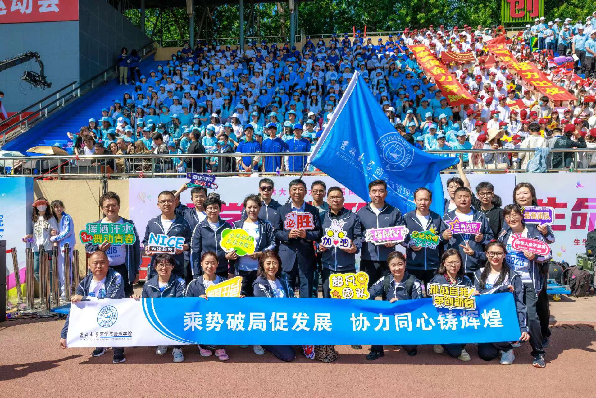 14:40分,最后一项女子旱地龙舟的赛场上,商管健儿们骑在“龙舟”上,以脚为桨,以手为舵,人舟共进,英姿飒爽,向着终点前进。在比赛中充分展现了商管人同心携手,踔厉奋发的品质,也彰显了良好的团队精神和合作意识。商管健儿也顺利完赛,取得了优异成绩。
