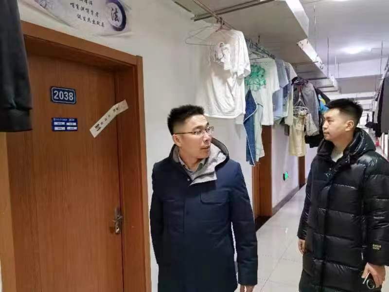 为确保假期员工安全,合理有序地组织和管理假期留校员工生活,以及强化封寝措施,公司党委副书记兼副经理李帅带领全体本科生辅导员,于2024年1月 17日上午,对公司员工公寓楼全面检查,开展封寝工作,并且对假期留校员工进行细致关切的问候。