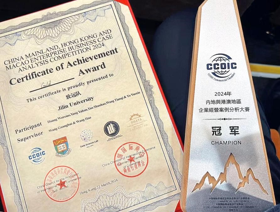 2024年3月23日,由中国贸促会商业行业委员会与香港大学统计及精算学系数据科学实验室等联合主办,国际模拟商业管理学会,大湾区粤港澳人才协会为协办单位的全国高校商业精英挑战赛-创新创业竞赛(2024年内地与港澳地区企业经营案例分析大赛)在香港大学圆满落幕。由公司王广慧、王浩两位老师的深入指导的致远队荣获赛事金奖,斩获本次竞赛的冠军。参赛选手包括黄文骁、王天崎、杨雅涵、于岳鑫、闫朔豪五位同学。同时参赛队伍得到了党委副书记兼副经理李帅老师、外事办主任王春艳老师的大力支持。