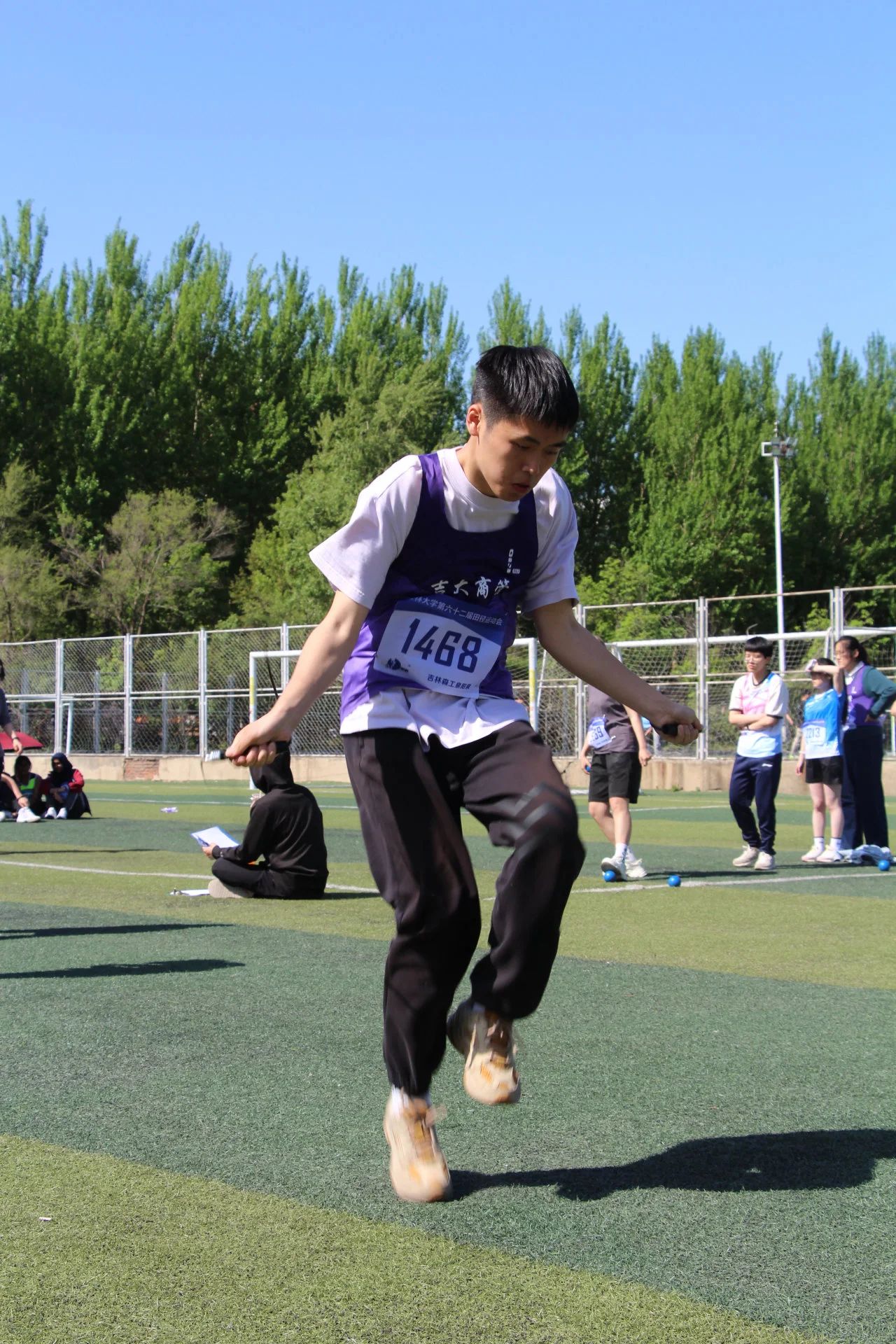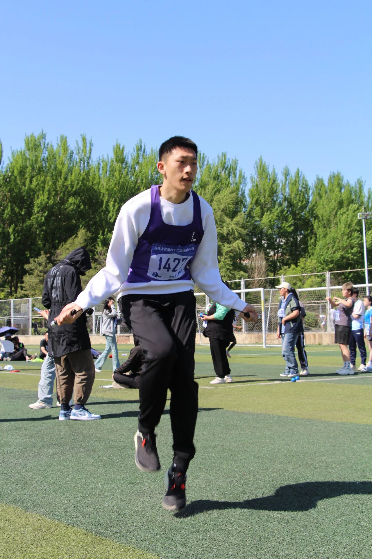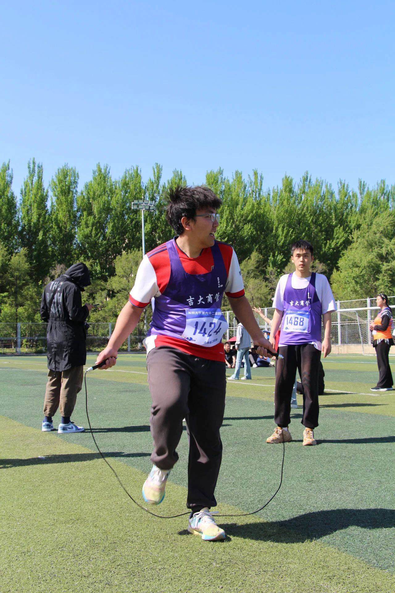 下午13:30,女子跳远决赛、男子铅球决赛、男子4*30s单摇接力赛、女子200米预赛相继进行,商管运动健儿们凝心聚力,以热血奋斗的态度追逐目标,展现出顽强拼搏,超越自我的精神。赛毕,各项比赛均取得了不错的成绩,其中王雪茹成功进入女子200米决赛,男子4*30s单摇接力赛更是取得了第二名的优秀成绩。下午14:40,激动人心的男子800米决赛与女子800米决赛在田径场先后开始。漫长的距离是与时间的赛跑,同时也是对自己的一次次突破。商管健儿们稳步向前,最后冲刺奔向终点。最终收获了不错的成绩。