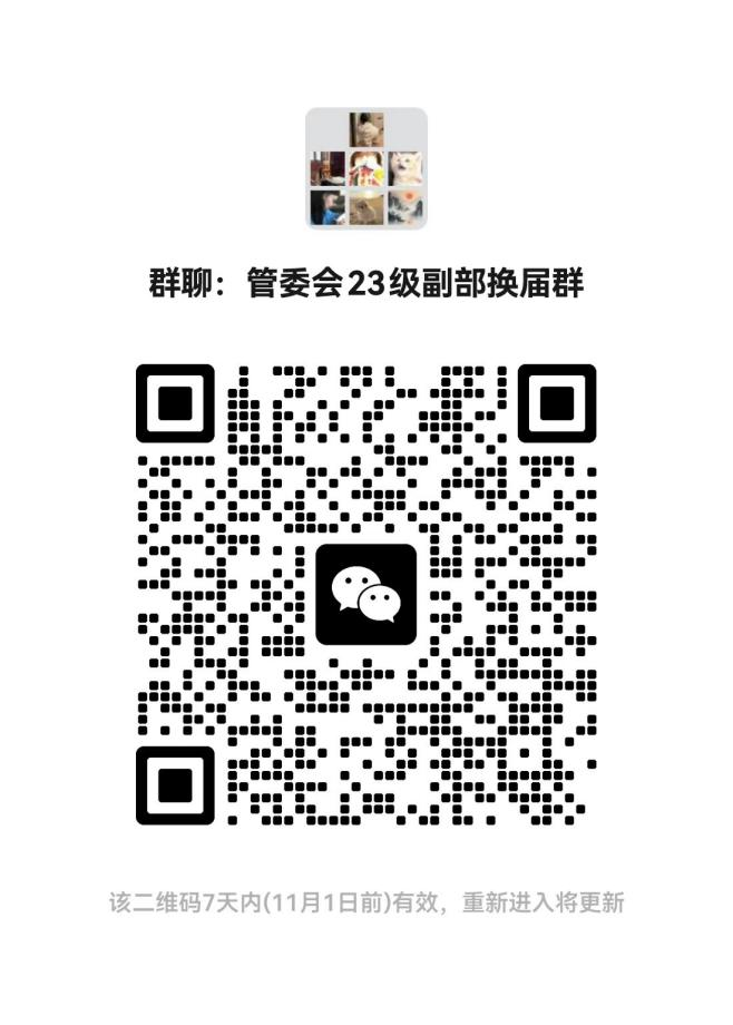 请有意参选的同学将报名表(PDF格式“第一志愿+姓名”命名)于10月3121:00前发送至各组织负责人邮箱,邮件标题同报名表要求一致,并在规定时间内进群以便后续竞选答辩工作的顺利开展。