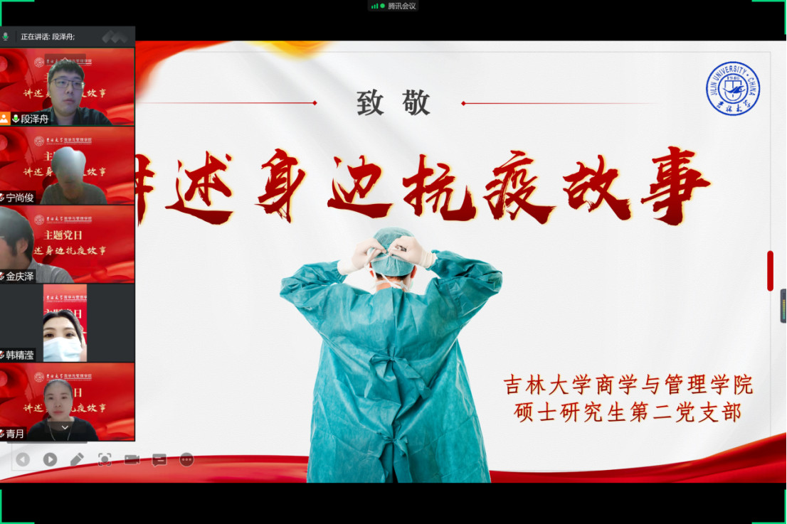 为进深入学习黄大年精神,弘扬伟大抗疫精神,大力宣传身边党员和师生在疫情防控工作中的先进事迹、感人故事与崇高精神,不断增强广大党员归属感、荣誉感和使命感,持续培育、挖掘和丰富吉大精神新内涵。5月13日,硕士二支部根据公司党委的统一安排,就“纪念习近平总书记对黄大年同志先进事迹作出重要指示五周年”相关精神进行学习讨论,并开展了“讲述身边抗疫故事”主题党日活动。本次会议由段泽舟主持。
