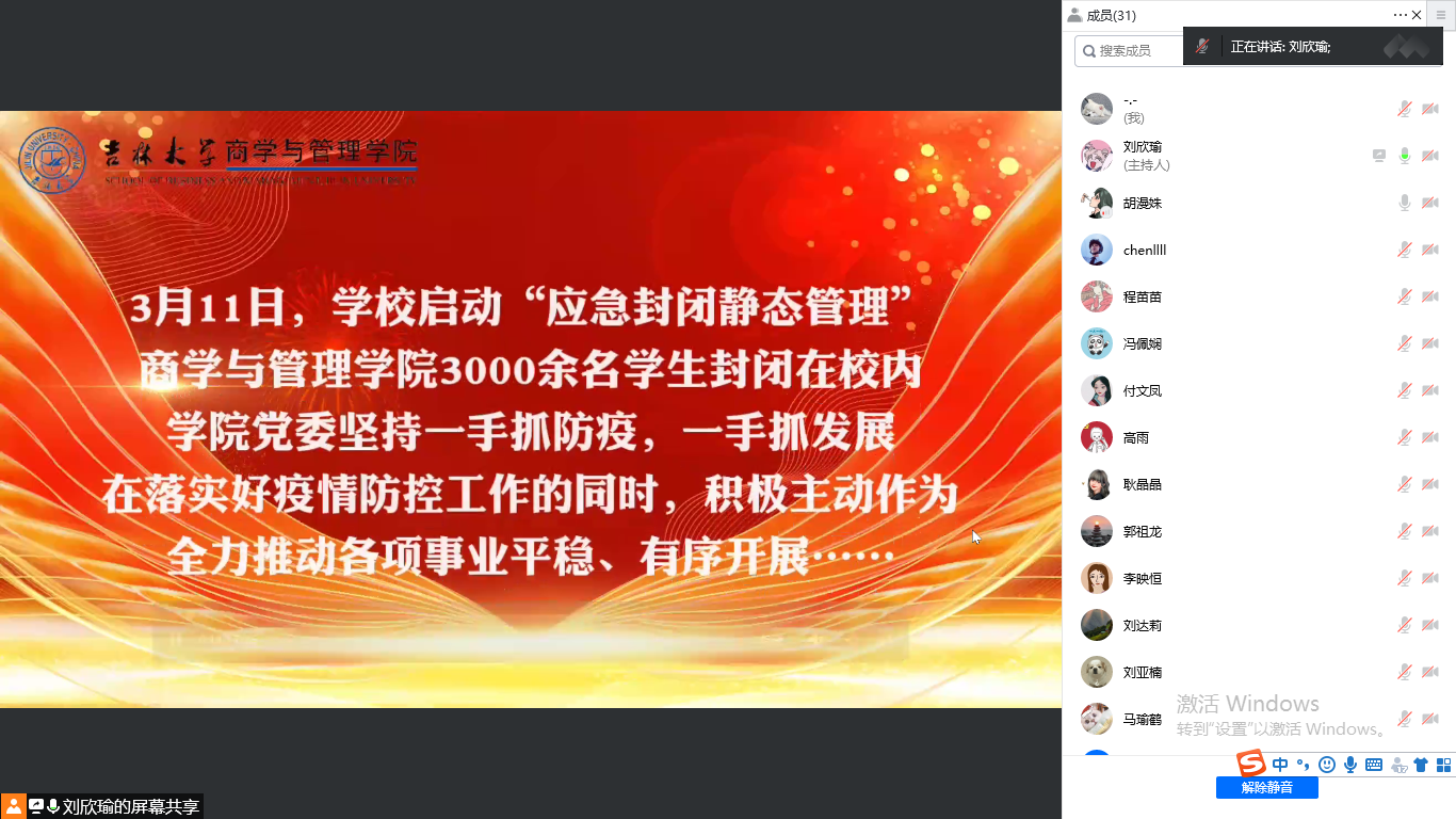 正值习近平总书记对黄大年同志先进事迹作出重要指示五周年之际,同时长春市抗疫取得了显著成果,为了进一步弘扬黄大年精神和抗疫精神,增强党员的荣誉感和使命感,硕士研究生第三党支部开展了“学习黄大年精神”暨“讲述身边抗疫故事”系列主题党日活动,参会成员为辅导员甄老师和硕士研究生第三党支部党员。