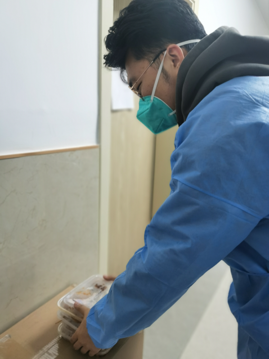 王韶玉同学在听闻公司需要志愿者后,第一时间报名成为一名志愿者,听从公司安排,与其他志愿者一起为同学们发放饭菜和防疫物资,在这个特殊时期尽自己所能为大家服务,冒着风险从一楼取餐,再给同学们送到各个宿舍门口,即使身心俱疲也毫无怨言。