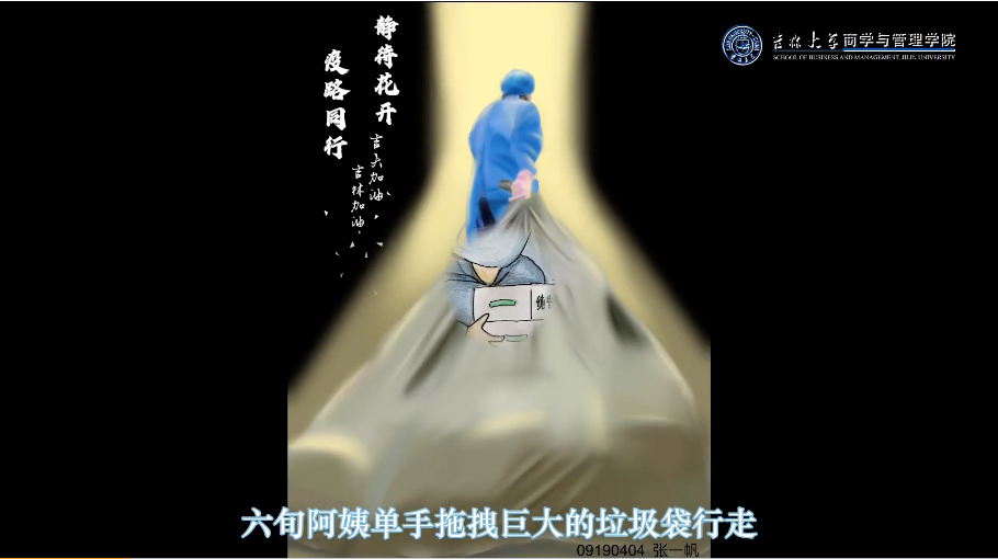 本次“疫情生画,以影纪疫”抗疫画作展活动的顺利推进与圆满结束,在深入贯彻了校院疫情防控期间员工教育精神的同时也切实益于员工拥有抗疫必胜的心理状态,引导同学们对抗疫志愿者怀有感恩的心。回归纸笔重拾绘画兴趣爱好,也助于提升文化与艺术素养,激发同学们封寝期间的创造积极性,促进了同学们德智体美劳全面发展。抗击疫情,“商管人”众志成城,青春无畏;“商管人”守望相助,踏雪前行。我们诚愿疫情早日散去,愿那时白山迎旭日东升,松水上冰雪消融,杏花林繁花似锦,笑语欢声依旧。待到春花烂漫之时,吉大定会逾越春寒!