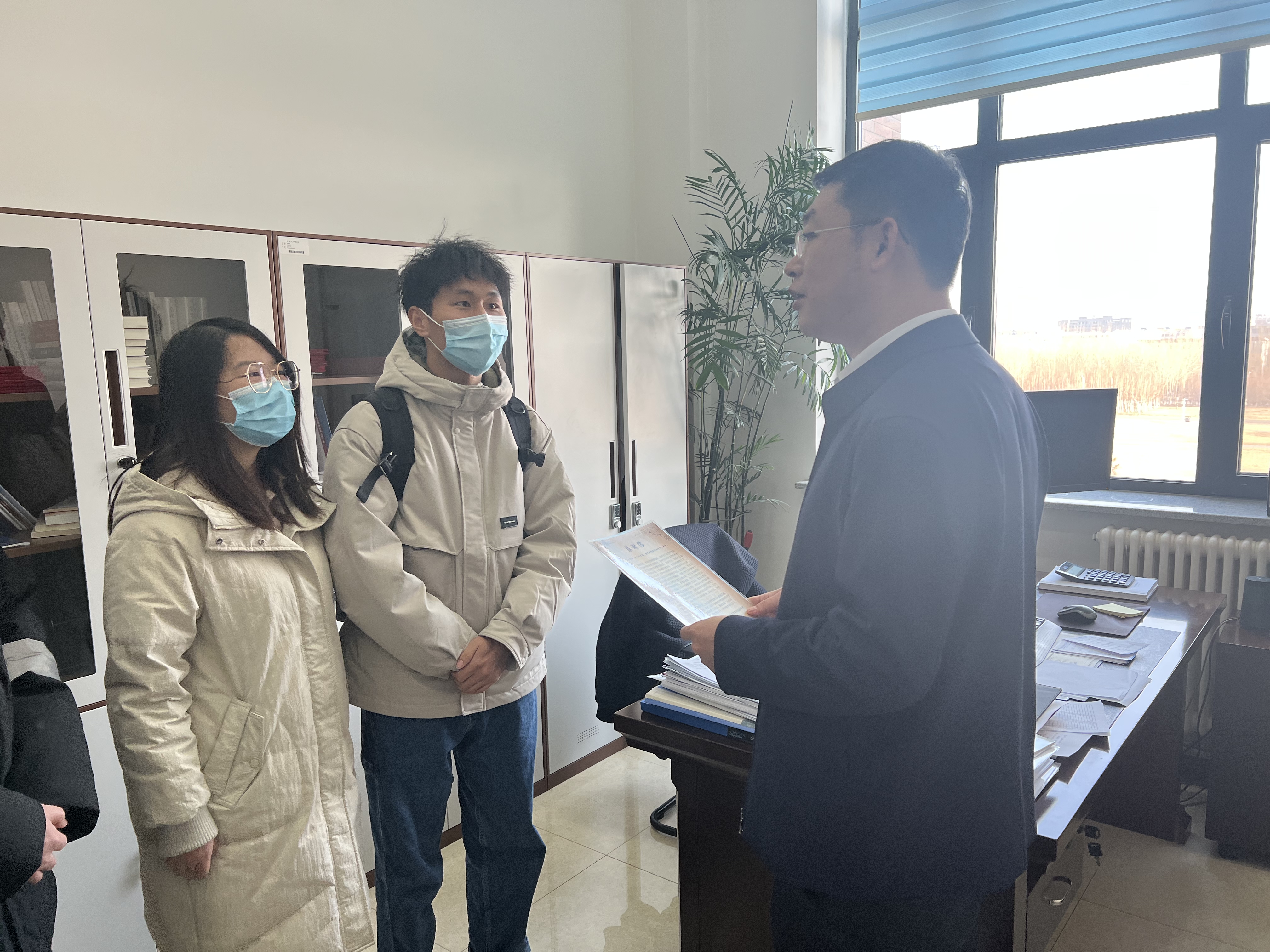 3月7日下午,suncitygroup太阳成集团研究生代表马远航同学、张庭赫同学、贾乐同学一行前往鼎新楼,向研究生工作部赵玥部长及相关老师送上感谢信。感谢研究生工作部的各位领导、老师在寝室搬迁过程中对全院师生无微不至的照顾和帮助,研究生寝室搬迁工作进展顺利,师生非常满意。