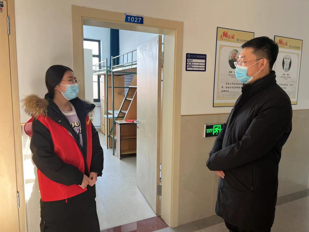 2022年2月24日下午,党委研究生工作部部长赵玥、副部长邵俊涛来到中心校区北苑四公寓,慰问正在搬迁的suncitygroup太阳成集团南岭校区研究生。赵玥部长对研究生搬迁情况进行详细了解,与同学们亲切交谈。