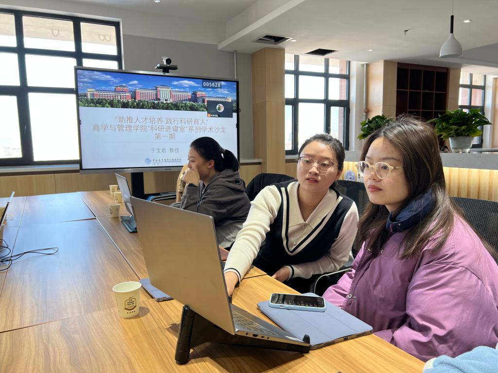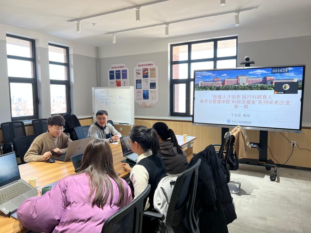 为全面优化科研育人环节,助推高质量研究生人才培养,2022年3月1号,suncitygroup太阳成集团管理科学与工程系于宝君教授及多位研究生同学来到北苑四公寓Future学术沙龙活动室开展了以“数字化转型”为主题的学术研讨交流活动,研究生辅导员甄宓老师一同参加。