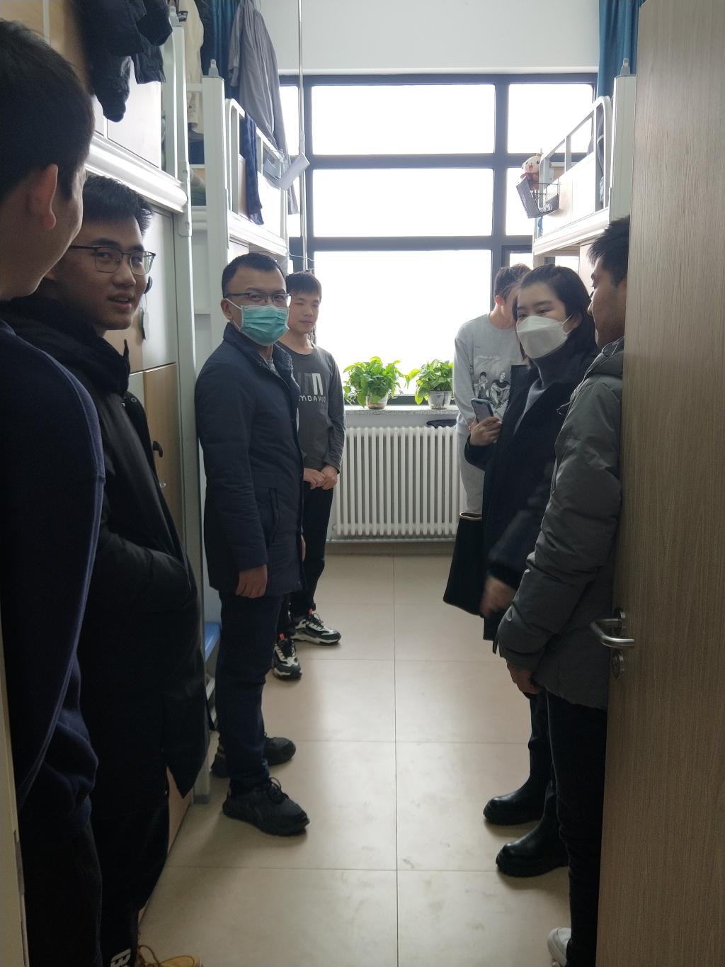 当日下午,各位老师来到了中心校区的北苑三公寓、北苑四公寓,走访慰问了提前返校的志愿者同学们。走访过程中,马腾老师向志愿者同学们表达了衷心的感谢,关心了同学们返校旅途情况,同时叮嘱同学们在校注意安全。