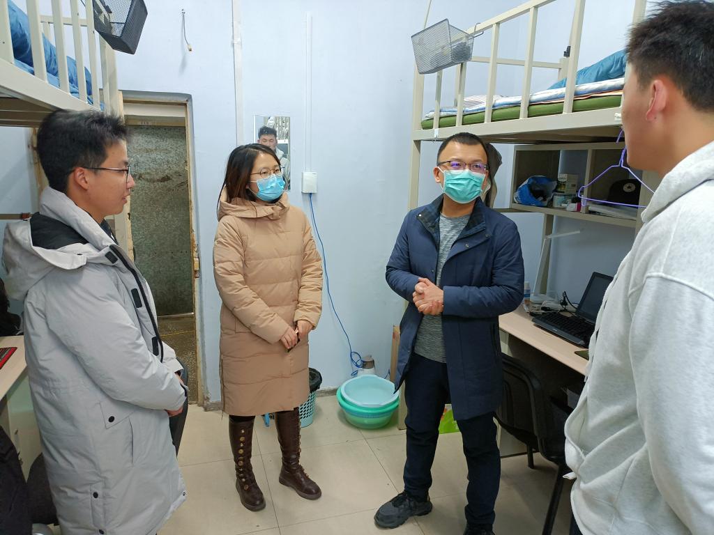 2022年2月16日,为保障suncitygroup太阳成集团员工跨校区寝室搬迁工作顺利开展,加强公司和同学间的沟通交流,公司党委副书记马腾老师,研究生管理办公室王文龙老师,甄宓老师和裴月莹老师来到中心校区、南岭校区的研究生寝室走访了春季学期第二批返校的同学们,并对中心校区北四公寓装修情况开展全面检查。