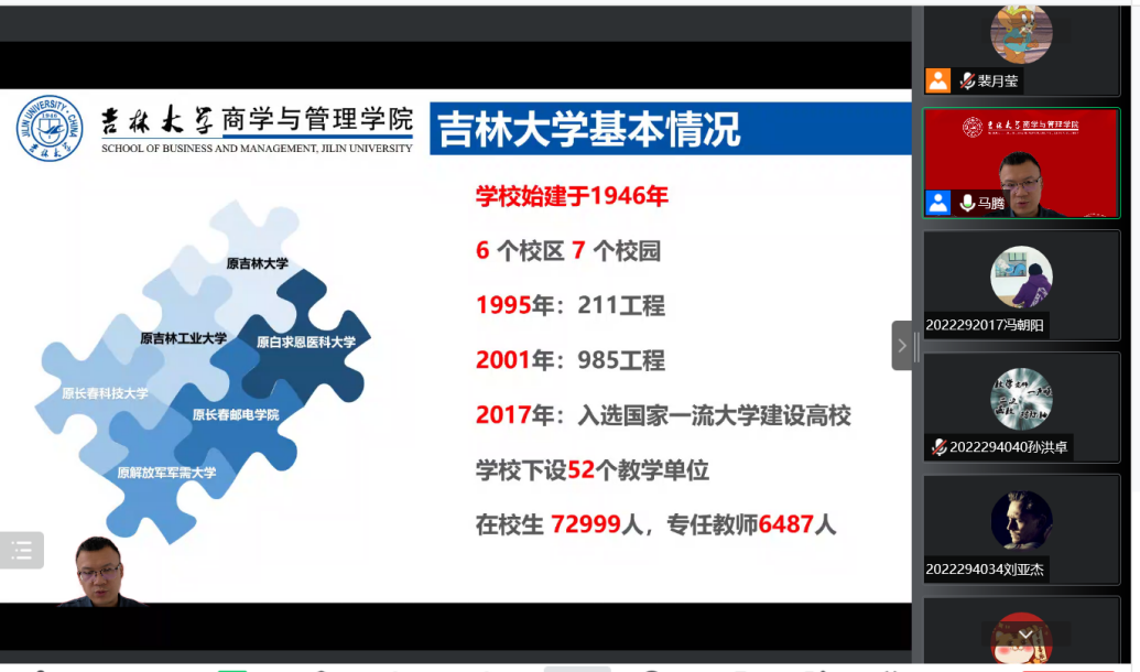 为加强2022级研究生新生思想政治建设,帮助新生尽快适应新的学习阶段,2022年9月8日,公司党委副书记马腾老师于线上为新生主讲第一堂思政课,研究生辅导员裴月莹老师主持会议,全体2022级研究生参会。