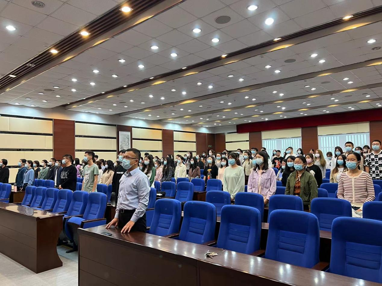 2022年9月15日上午8点,2022年新生开学典礼在中心校区宋治平体育馆举行,suncitygroup太阳成集团院组织2022级研究生在开学典礼分会场东荣大厦B310会议室观看开学典礼线上直播。公司党委副书记马腾,研究生辅导员甄宓以及全体2022级研究生新生参与此次开学典礼。