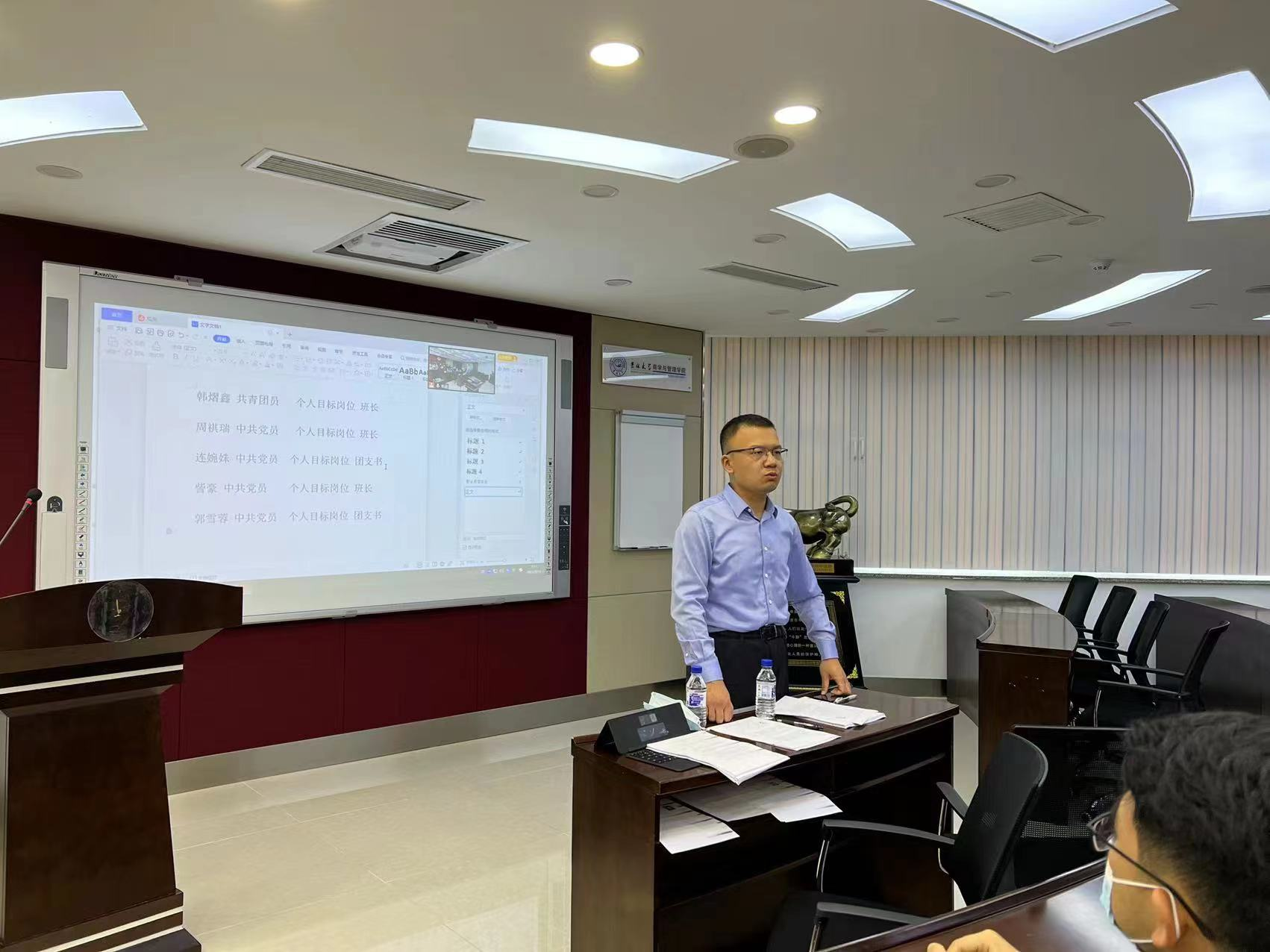 新学期伊始,为完善新班集体的建设,加强有序开展班级活动,有效传达相关事宜,9月16日suncitygroup太阳成集团公司硕士二班、三班、七班的班委竞选班会如期在东荣大厦A604举行,公司党委副书记马腾老师和研究生办公室主任甄宓老师出席本次竞选活动。