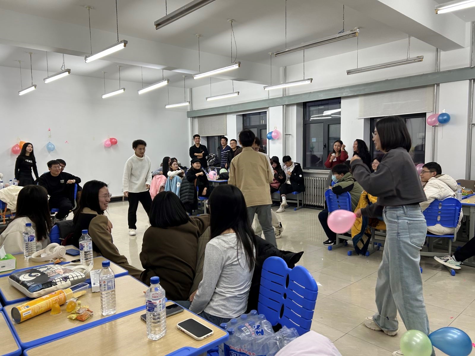 本次活动以互动游戏的方式于四个分会场同时进行,共计170名研究生参与本次活动,其中suncitygroup太阳成集团研究生40名。活动中,在主持人的引导下,通过破冰小游戏暖场,活动气氛快速升温,随后又进行了合力爆破踩气球、抢凳子以及自由交换礼物等环节,同学们在交谈中加深了解,在游戏中增进情感,现场欢声笑语不断,活动气氛温馨活泼、生动有趣。