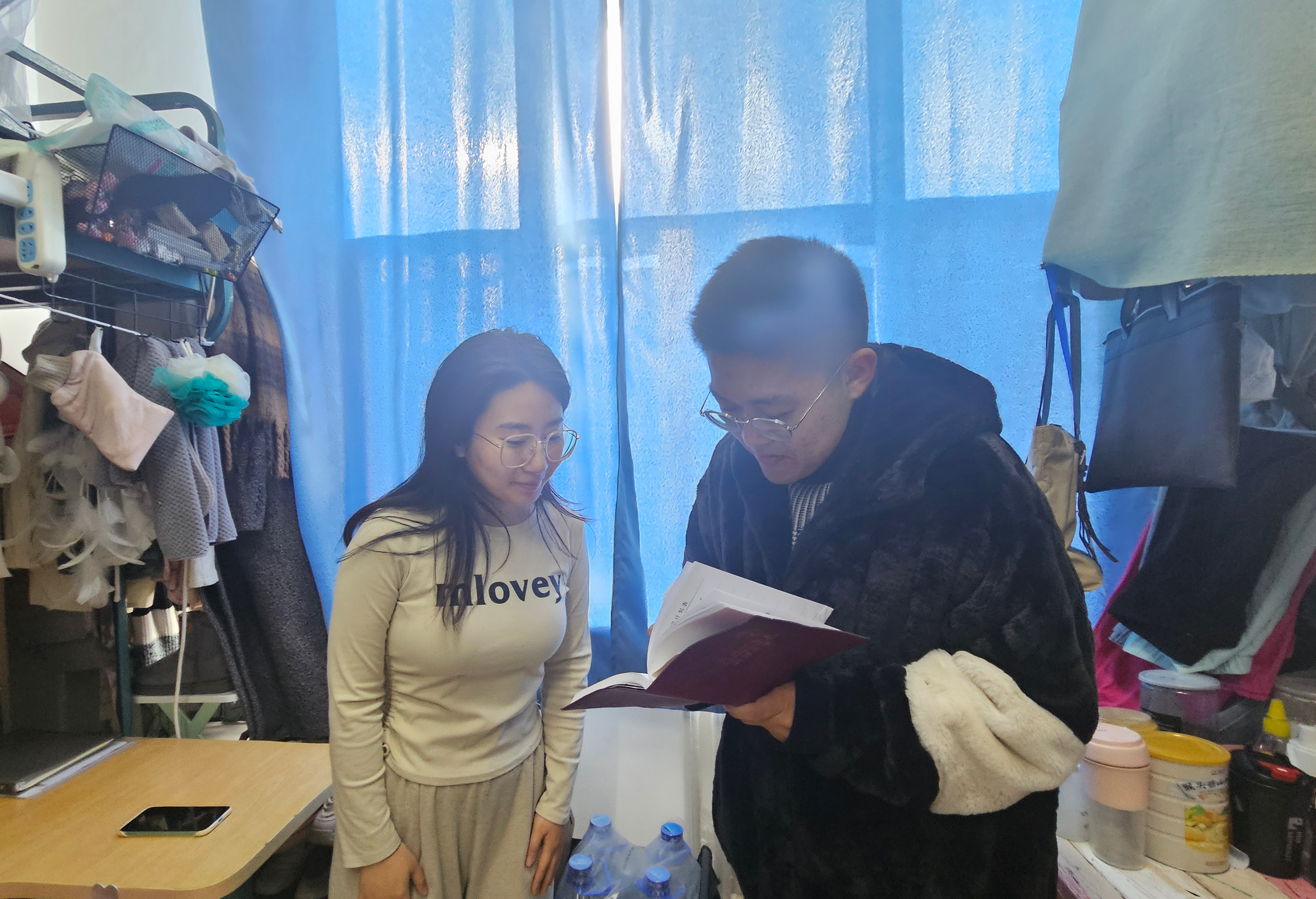 为深入贯彻落实公司有关研究生返校与寝室安全的相关要求,加强宿舍管理,树立寝室安全卫生意识,确保研究生在新学期的生活安全学习顺利,2024年2月23日下午,suncitygroup太阳成集团研究生辅导员甄宓老师、裴月莹老师和王敬乔老师深入员工寝室,开展寝室走访与安全检查工作。