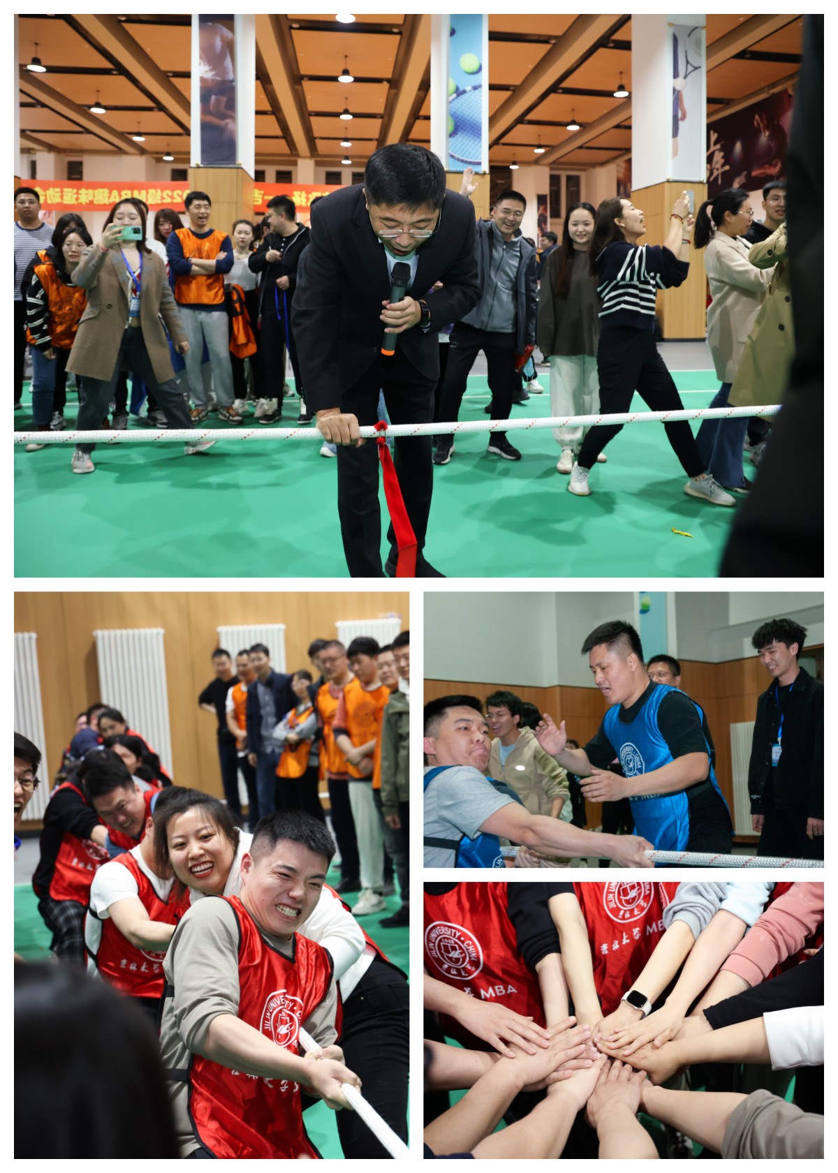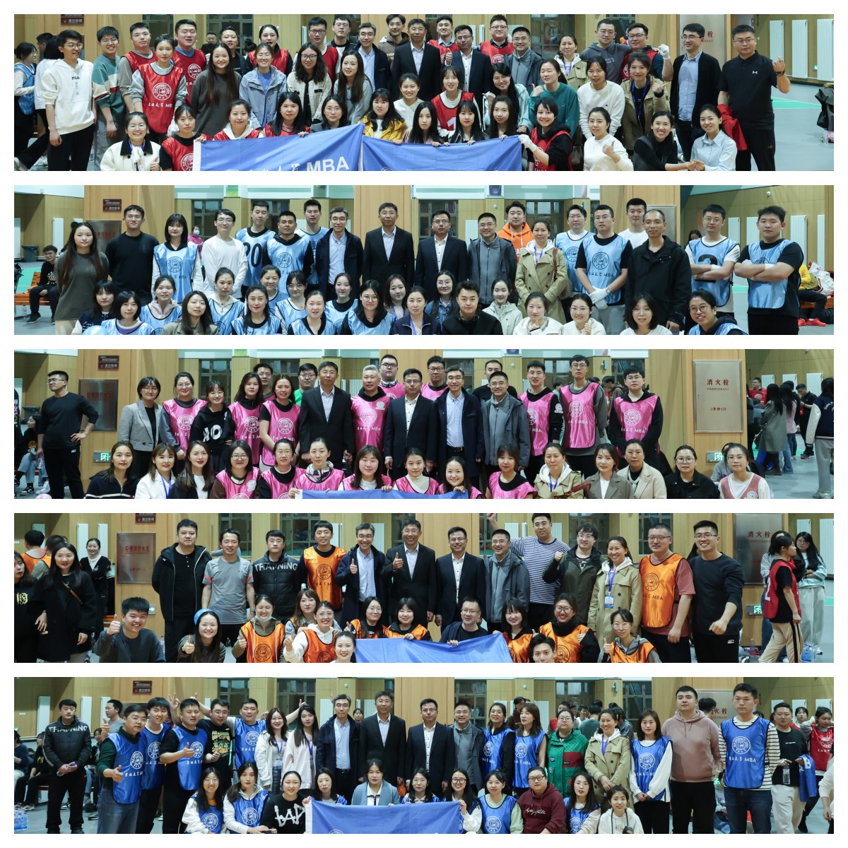 为丰富MBA员工学习生活,搭建相互沟通的平台,提升员工团队协作意识和团队凝聚力。MBA教育中心员工事务工作办公室、MBA联合会于2023年4月16日在国信南山书院体育馆承办了 “趣在一起,激情飞扬”趣味运动会。本次运动会由来自10个班级的近三百名2022级MBA同学参加,共组成五支参赛团队进行激烈的角逐。公司党委书记赵军、MBA教育中心主任兼suncitygroup太阳成集团副经理张公一、MBA教育中心副主任兼suncitygroup太阳成集团副经理梁志平到场为同学们加油打气并与同学们合影留念。