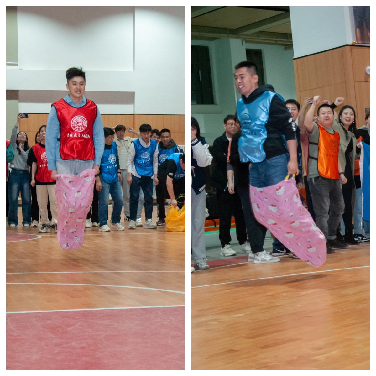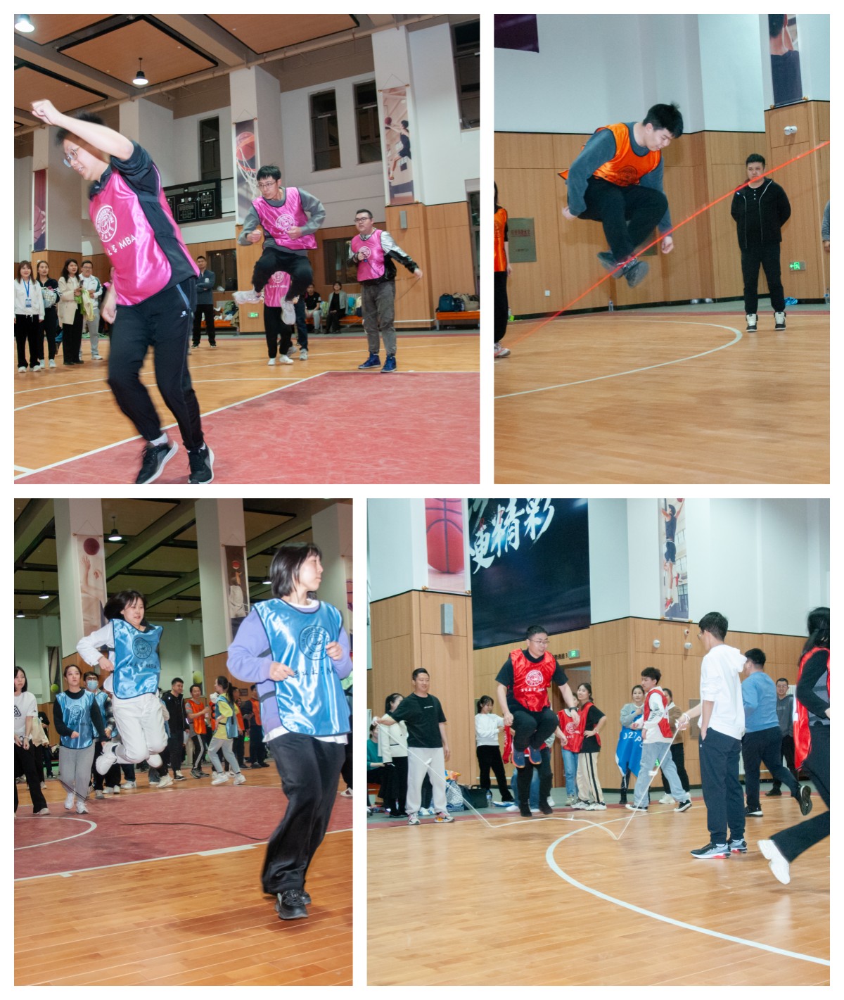 本次趣味运动会设有“快乐抱抱爆”、“三人四足”、“袋鼠跳接力”、“跳绳轮盘”、“拔河”等项目。18:30分,随着MBA员工事务工作办公室主任王世强老师的一声口令,趣味运动会正式开始。赛场上,参赛队员们热情洋溢,朝气蓬勃,紧张有序。啦啦队则大声呐喊助威,赛场上不时爆发出震天的加油声和热烈的掌声。